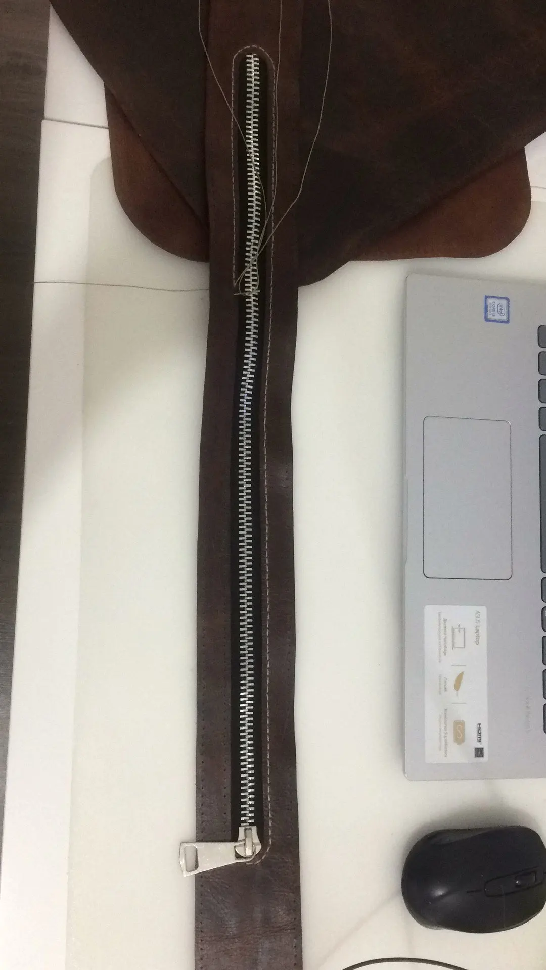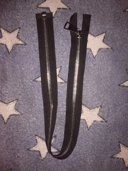 zipper is size #10 and is excellent quality. pull tab is quite larger than I expected. pull tab width exceeds even my thumb and I am 6 ft tall man average hand size.