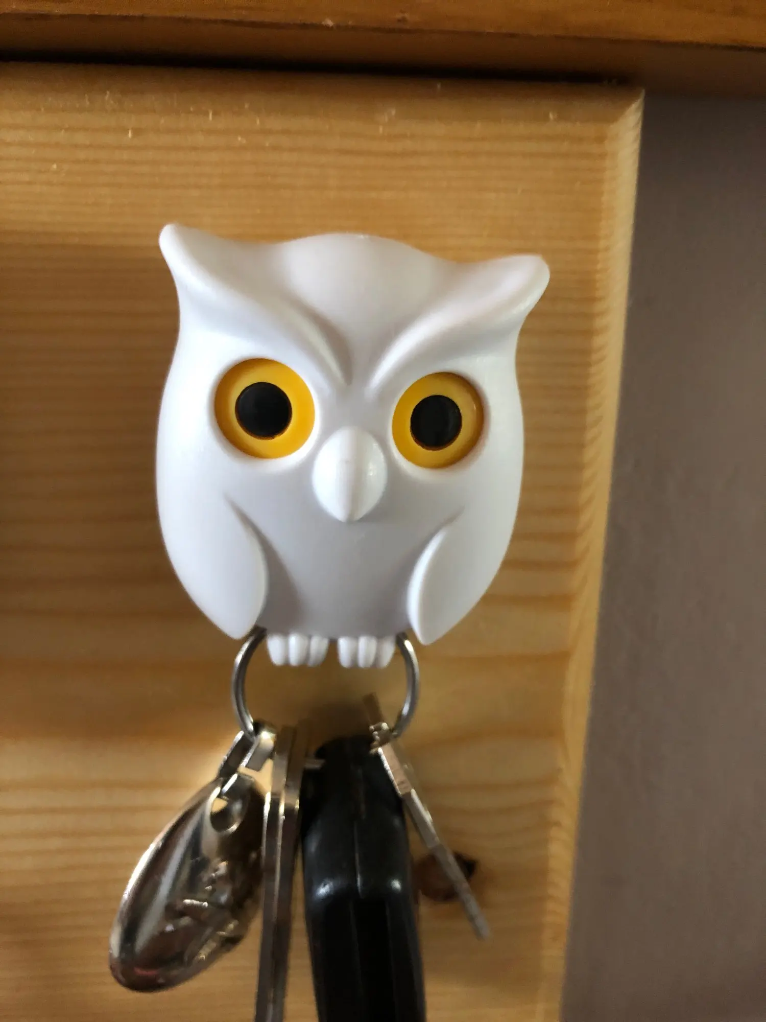 Cute owl shape, it will open eyes while you hanging up the key