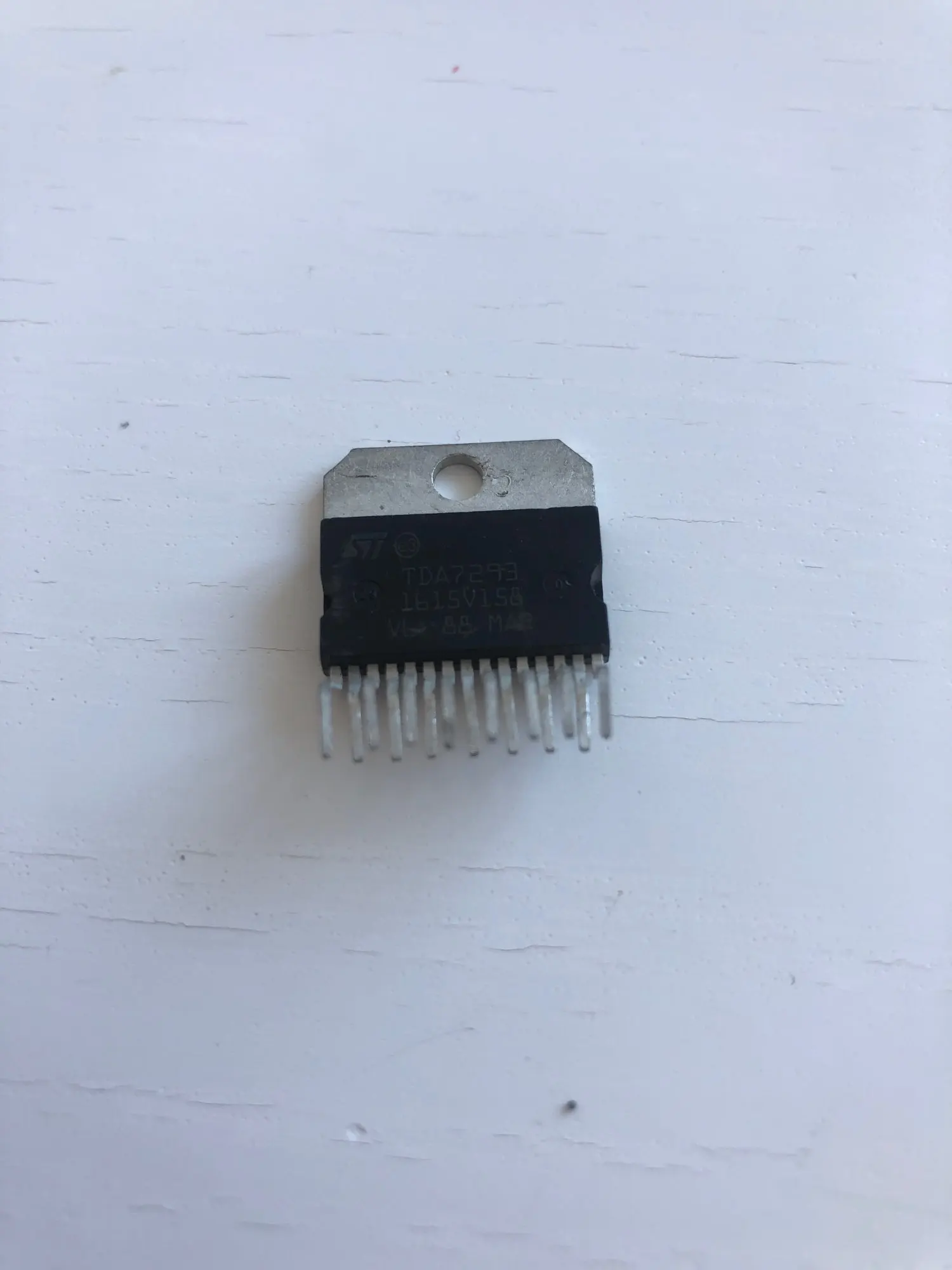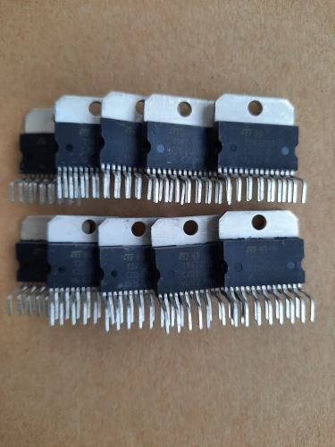 Fake! Relabeled TDA7496 - tested. Amplifier chips in multiwatt15 casing can be separated using A multi-meter. If resistance between pins 8-15 and 8-11 is around 50R and 30K between pins 7-1 and 7-5 chip type is TDA7496 or TDA7495. If in addition resistance is around 50R between pins 8-4 and 30k between pins 7-6 chip type is TDA7497. Chips TDA7496 or TDA7495 have identical function but different power and can be separated only by testing quiescent current in active mode - around 25ma for TDA7496 and 70ma for TDA7495. TDA7294 can be separated from TDA7293 because pins 5,11 and 12 are not connected anywhere in TDA7294. At asked price I hoped for better, previously I have got TDA7294 relabeled to TDA7293, but not souch complete fake!