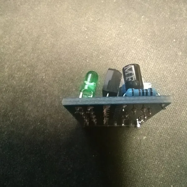 The jumper is missing. The components are mounted at an angle.