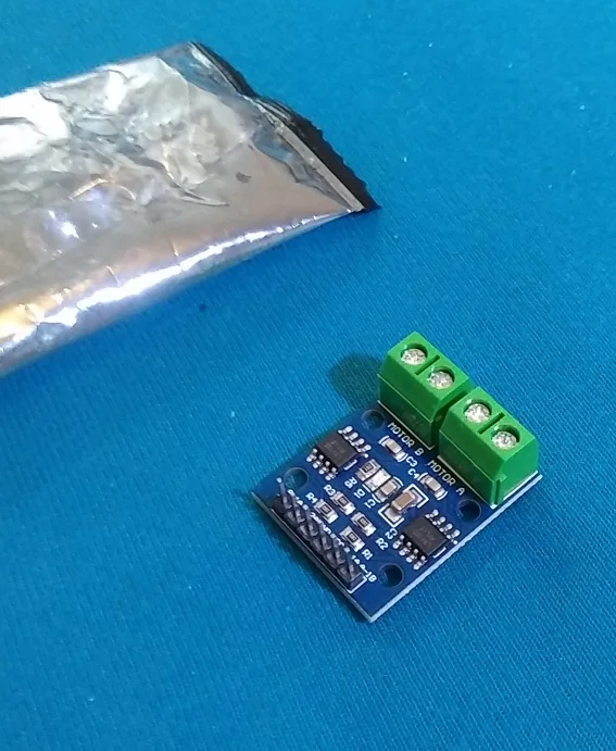 Simple low weight H bridge to control motor. Amperage capabilities are kind of low, but they work well on steppermotors, fans or vibrationmotors. Easy to control and cheap to add to a project. Definitely recommended