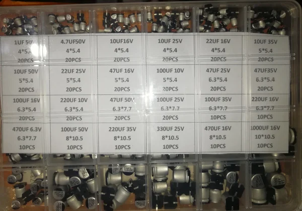 1uF~1000uF 6.3V-50V 400Pcs 24Value SMD Aluminum Electrolytic Capacitors Assortment Kit + Box
