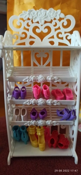 1x Plastic 5 Layers White Doll Shoes Rack / Random 12 Pairs Shoes Dollhouse Furniture Accessories for Barbie Doll Kids Toy