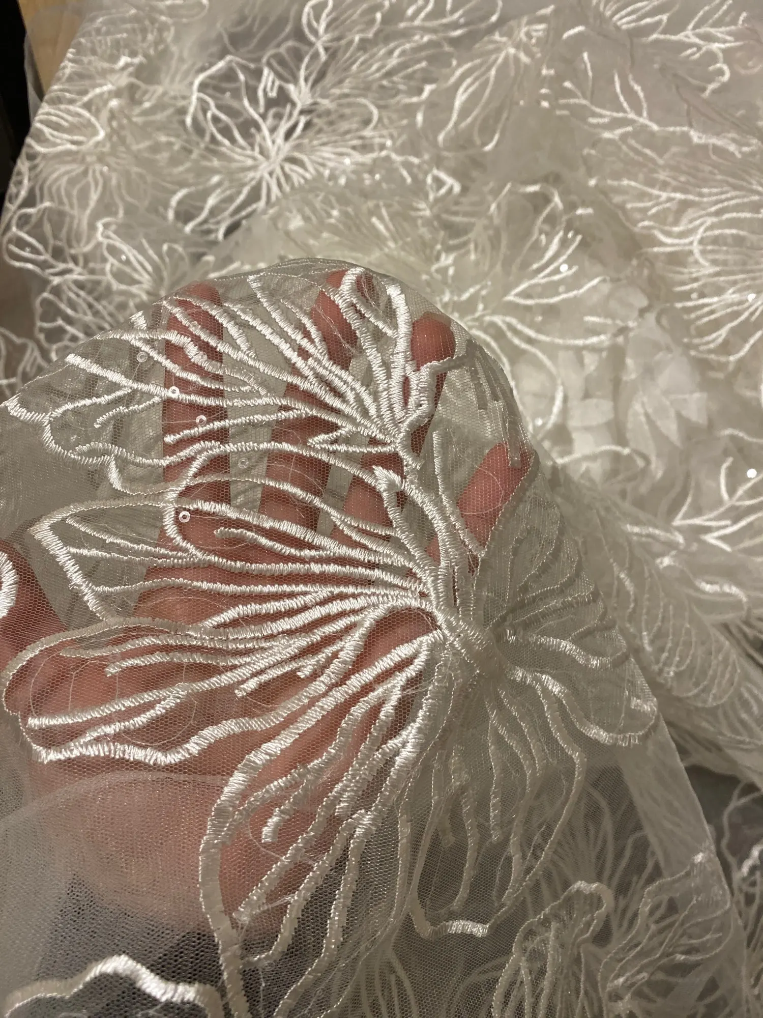 1yard white flowers hollow Net yarn fabric Sequin embroidery lace mesh fabric wedding dress skirt cloth DIY garment accessories
