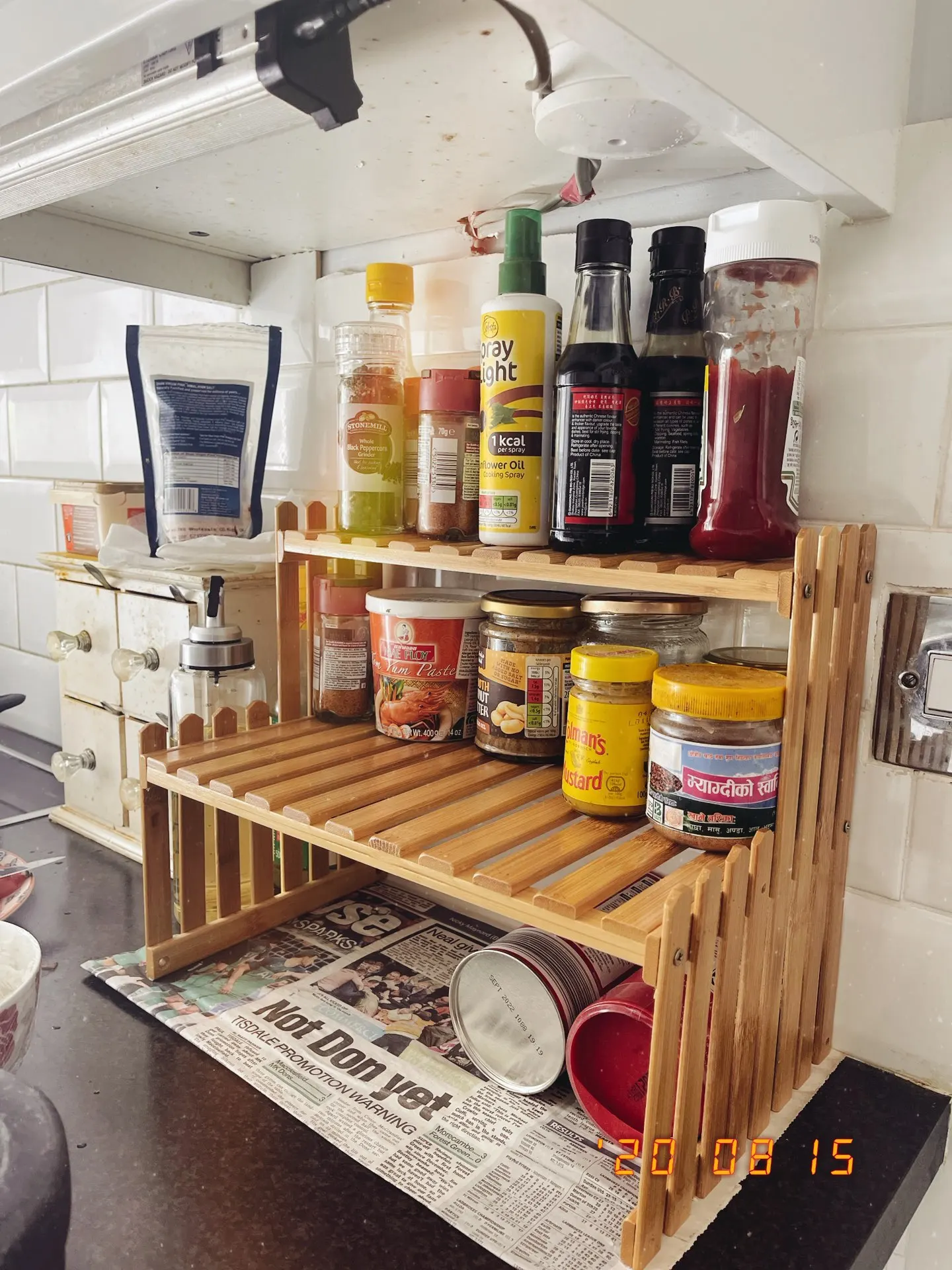 2 Layers Bamboo Storage Rack Kitchen Spice Jar Bottle Seasoning Rack Decoration Organizer Shelf Home Desktop Racks