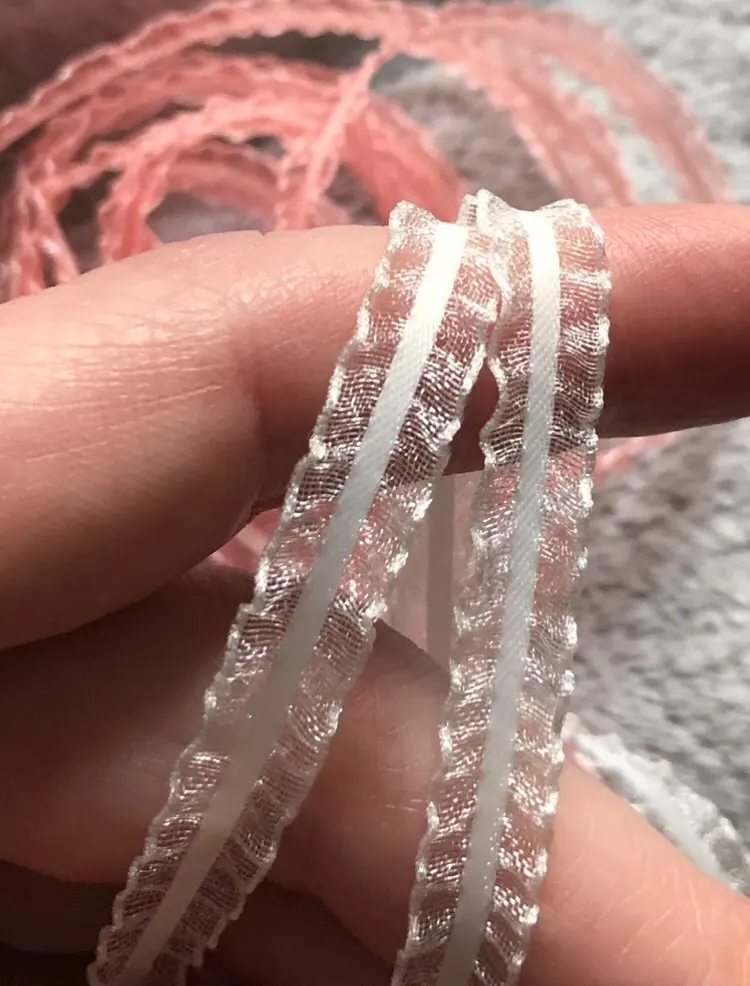 2 Meters Width 0.7cm 5 Colors Embroidery Ruffle Lace Trim Ribbon Bilateral Lolita Lace Fabric DIY Dress Headwear Sewing Supplies