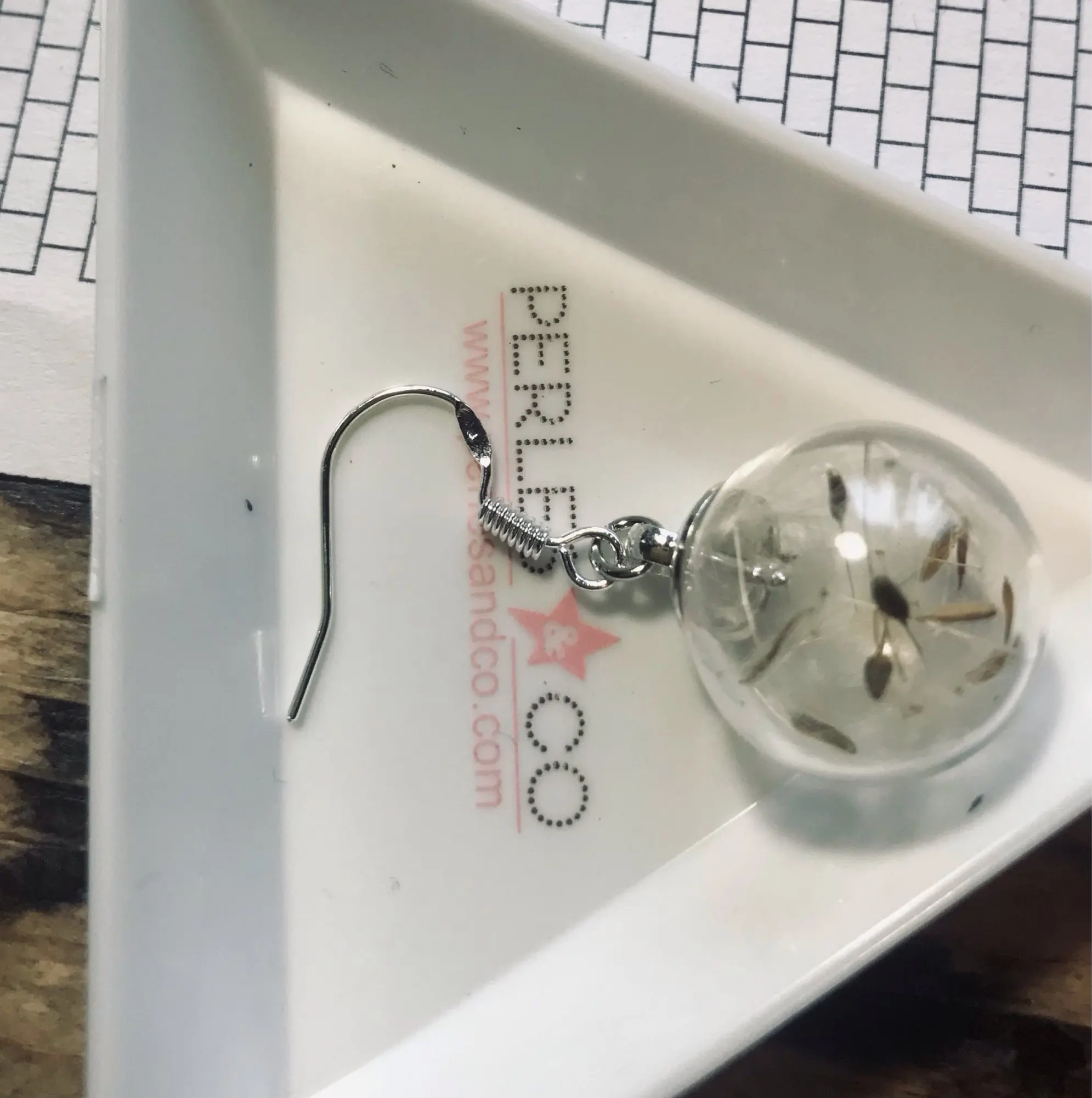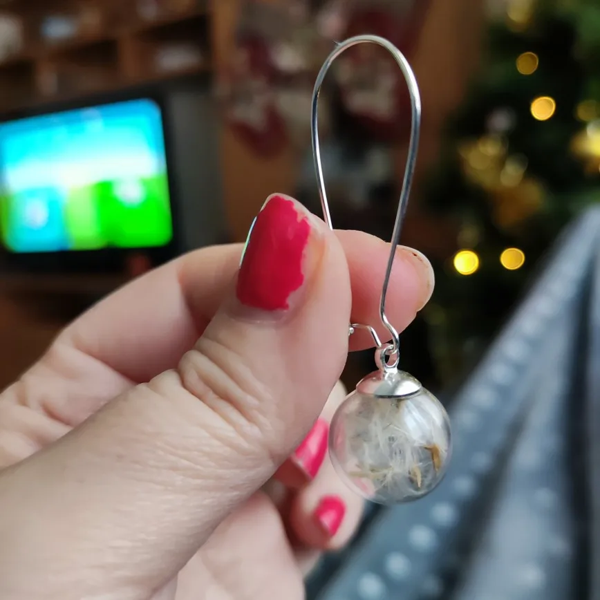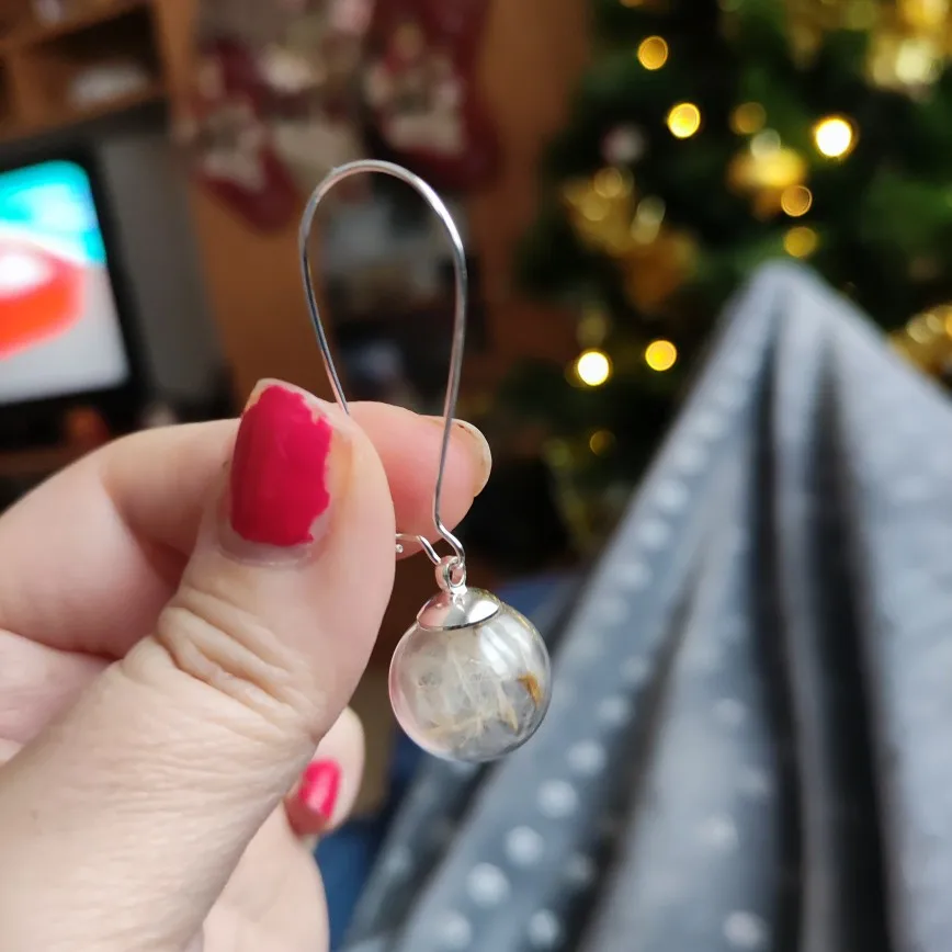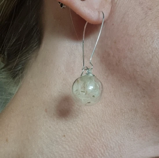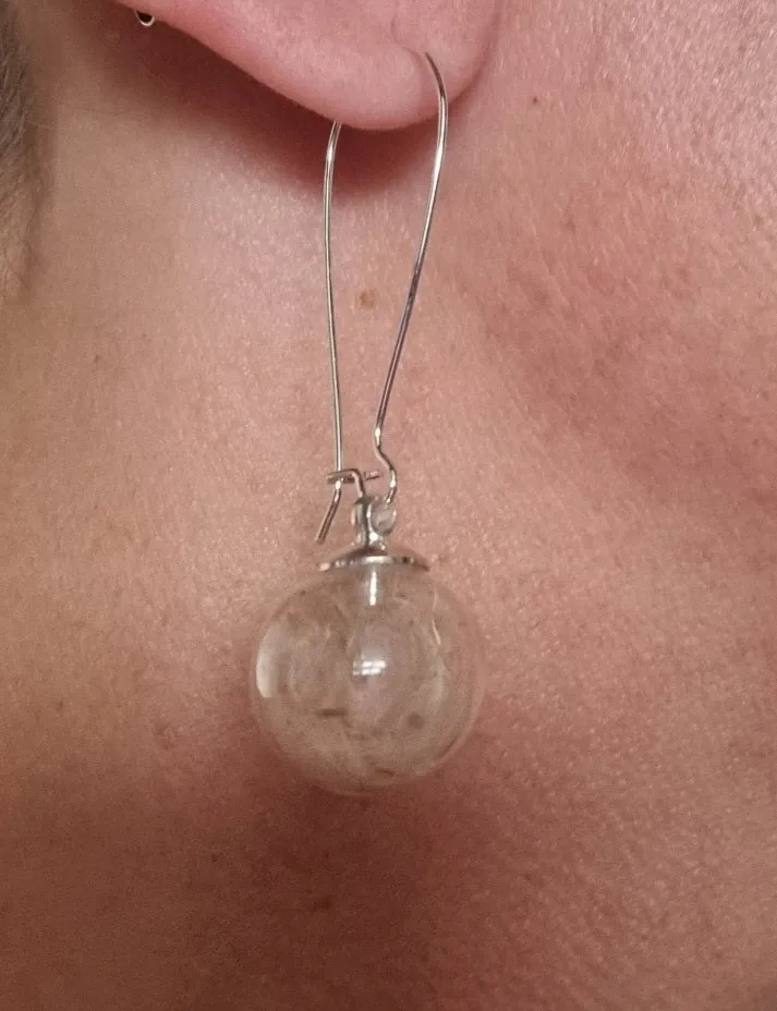 2 pair 16MM Glass globe Dandelion Seed earrings Eco Earring Wish Bottle earrings Botanical jewelry