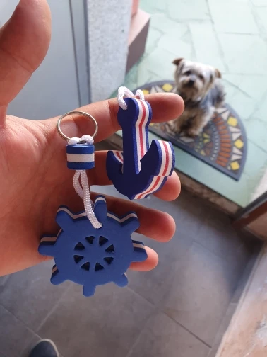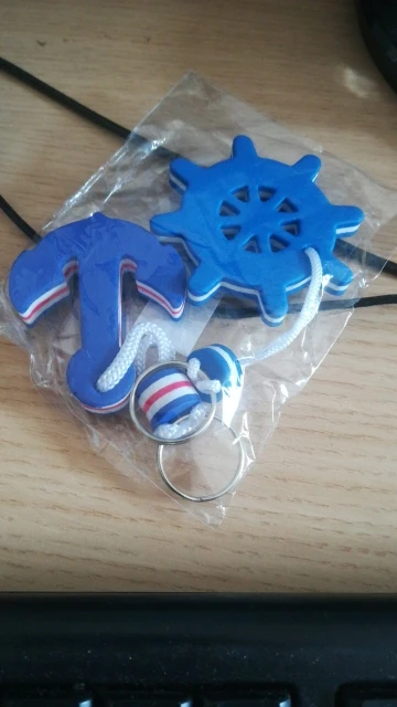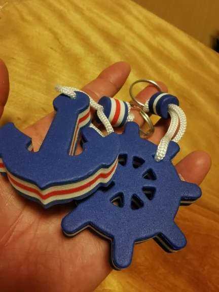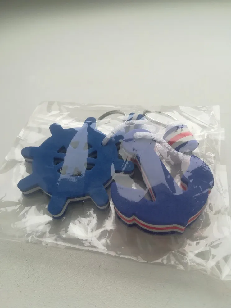 2 Pieces Kayaking Boating Sea Fishing Water Floating Keychain Key Ring for Couples Lovers- Anchor and Rudder Blue