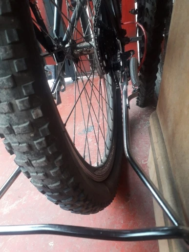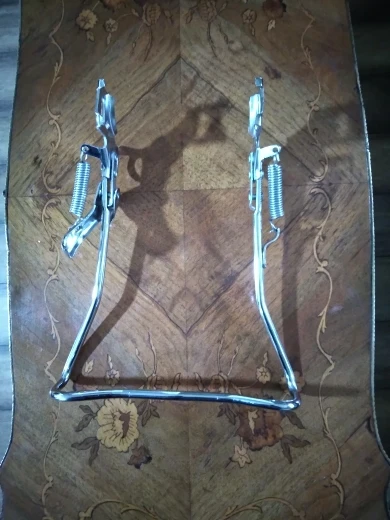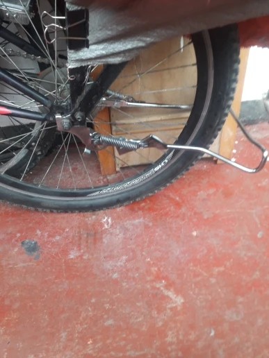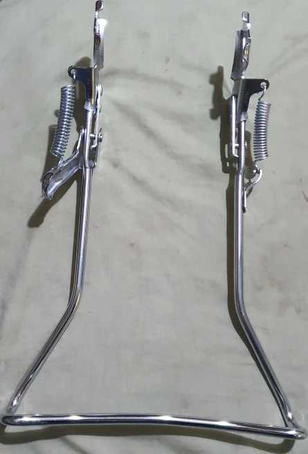 Great bicycle double leg kickstand / parking stand. It's much more stable than a single leg stand, and has a latch to lock it in place. Mounted to my rear axle easily.