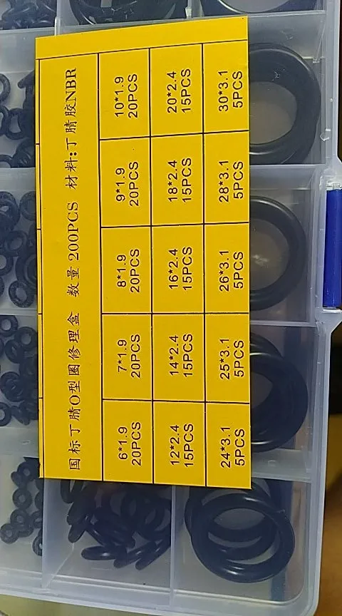 200pcs 15 Sizes O Rings Rubber O Ring Seal NBR Black Sealing O-rings Nitrile Washer Rubber o-ring set Assortment Kit Set Box