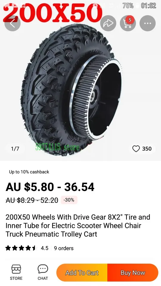 200X50 Wheels With Drive Gear 8X2" Tire and Inner Tube for Electric Scooter Wheel Chair Truck Pneumatic Trolley Cart