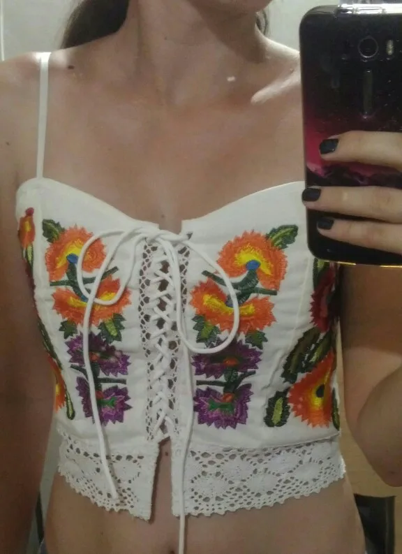 2017 Floral Embroidery Crop Top Women Summer Tops Bandage Cropped Backless Clothing