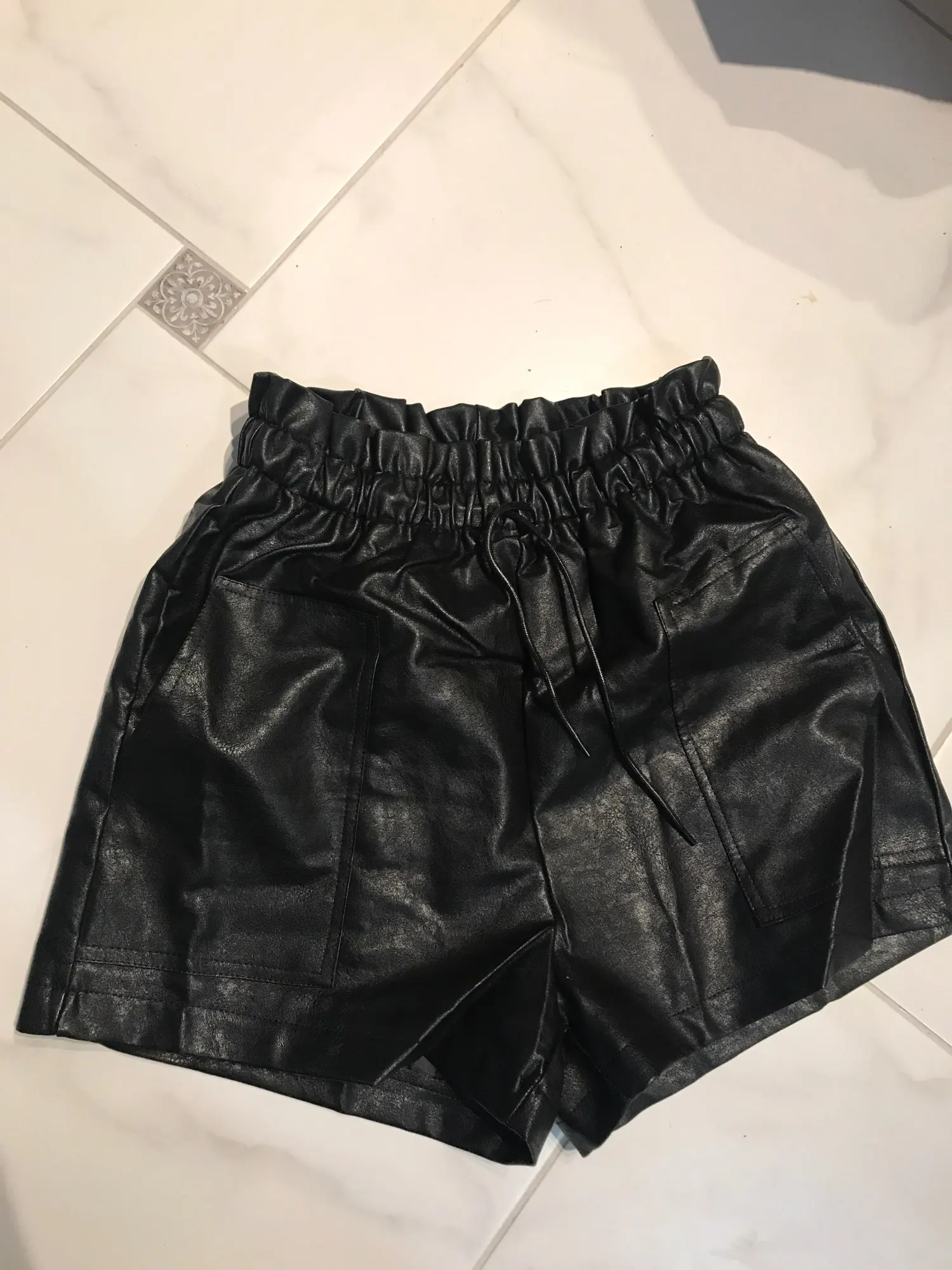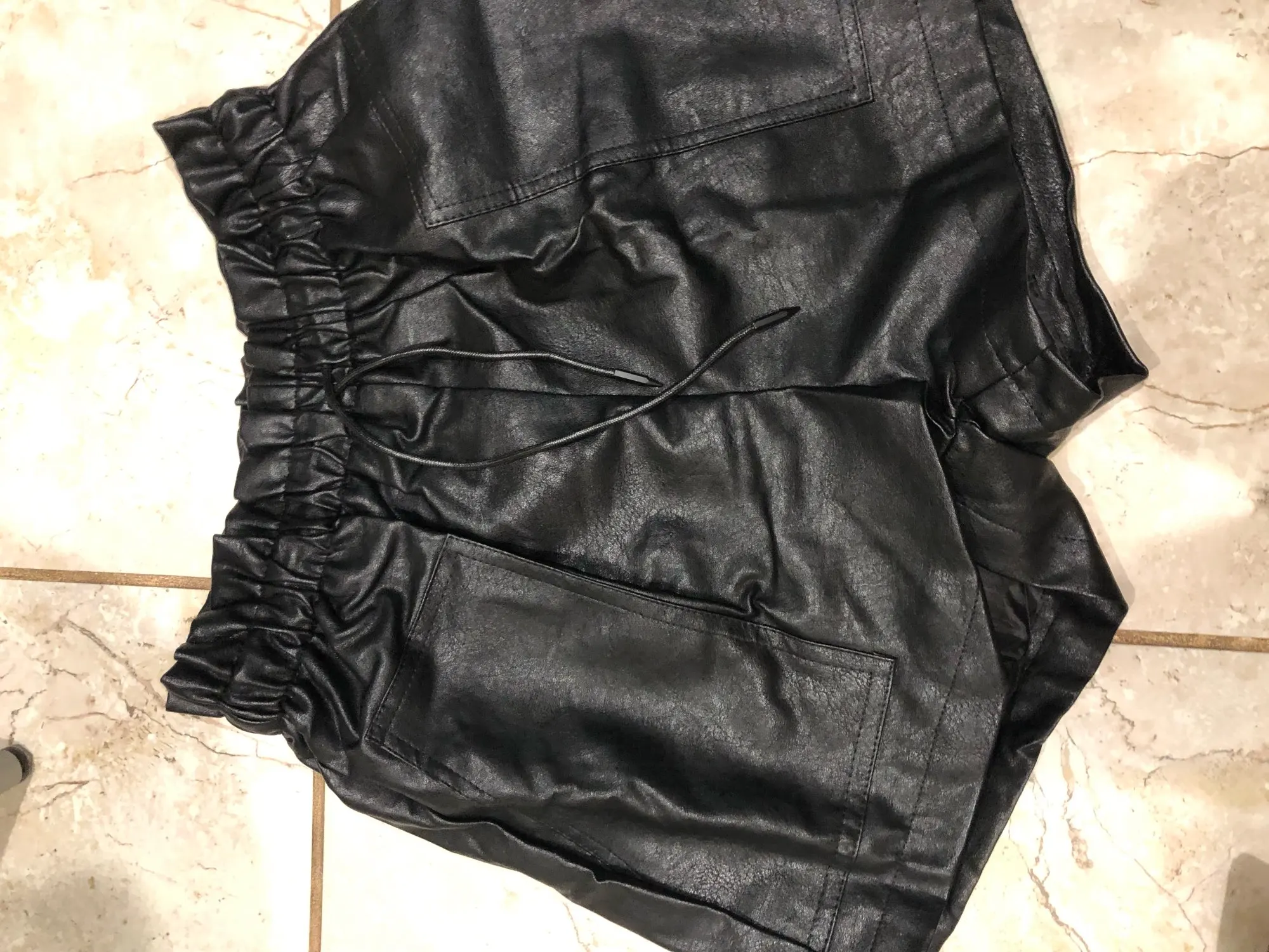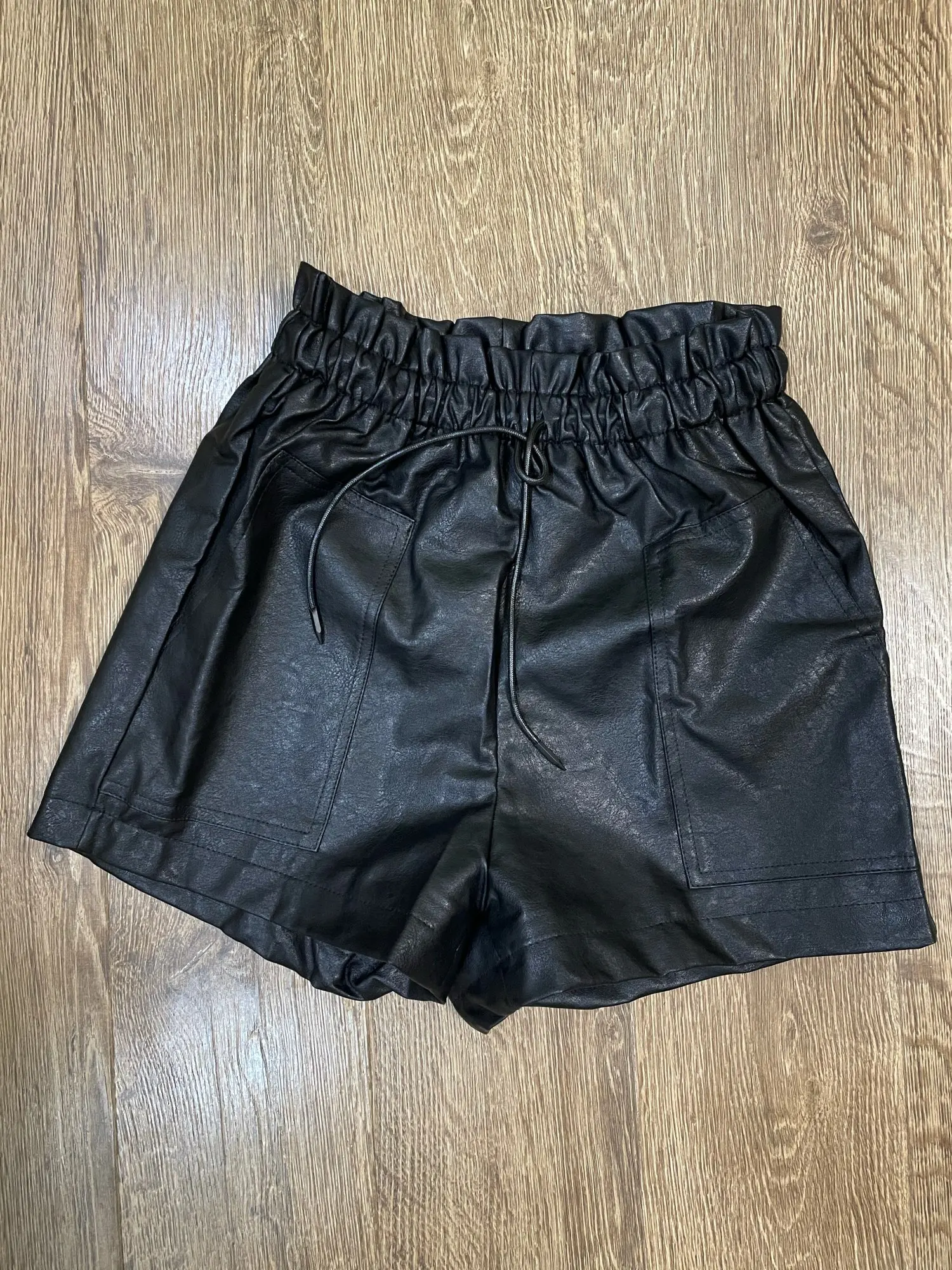 2022 Autumn New Korean Style Female Sexy Leather Shorts High Waist Loose Wide Leg Short Femme Elastic Waist Belt Free Shipping