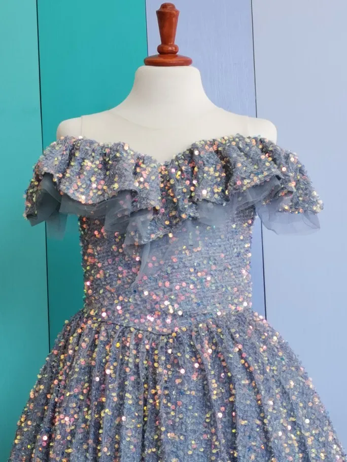 the glitter falls quite a bit...but a beautiful dress!