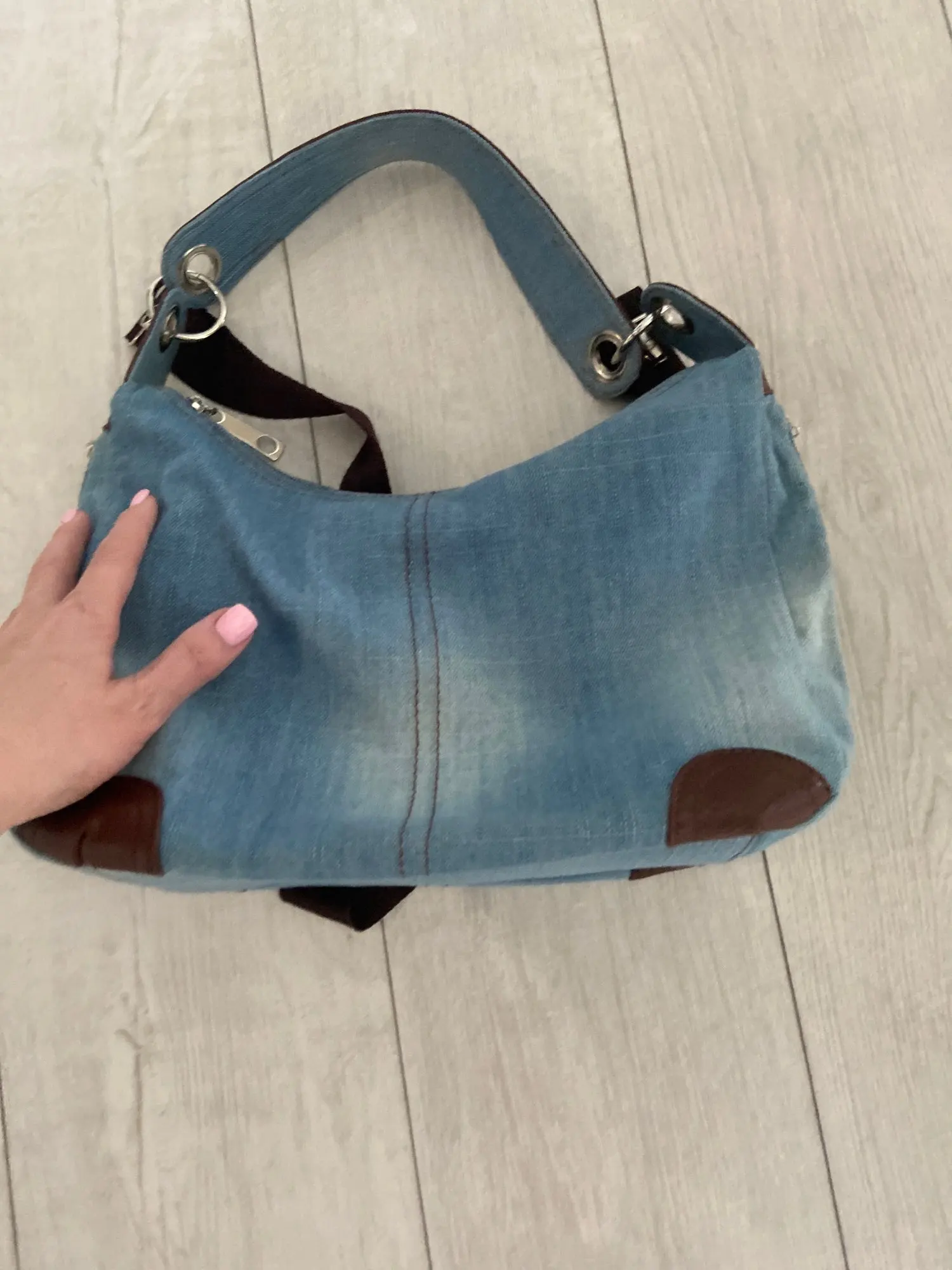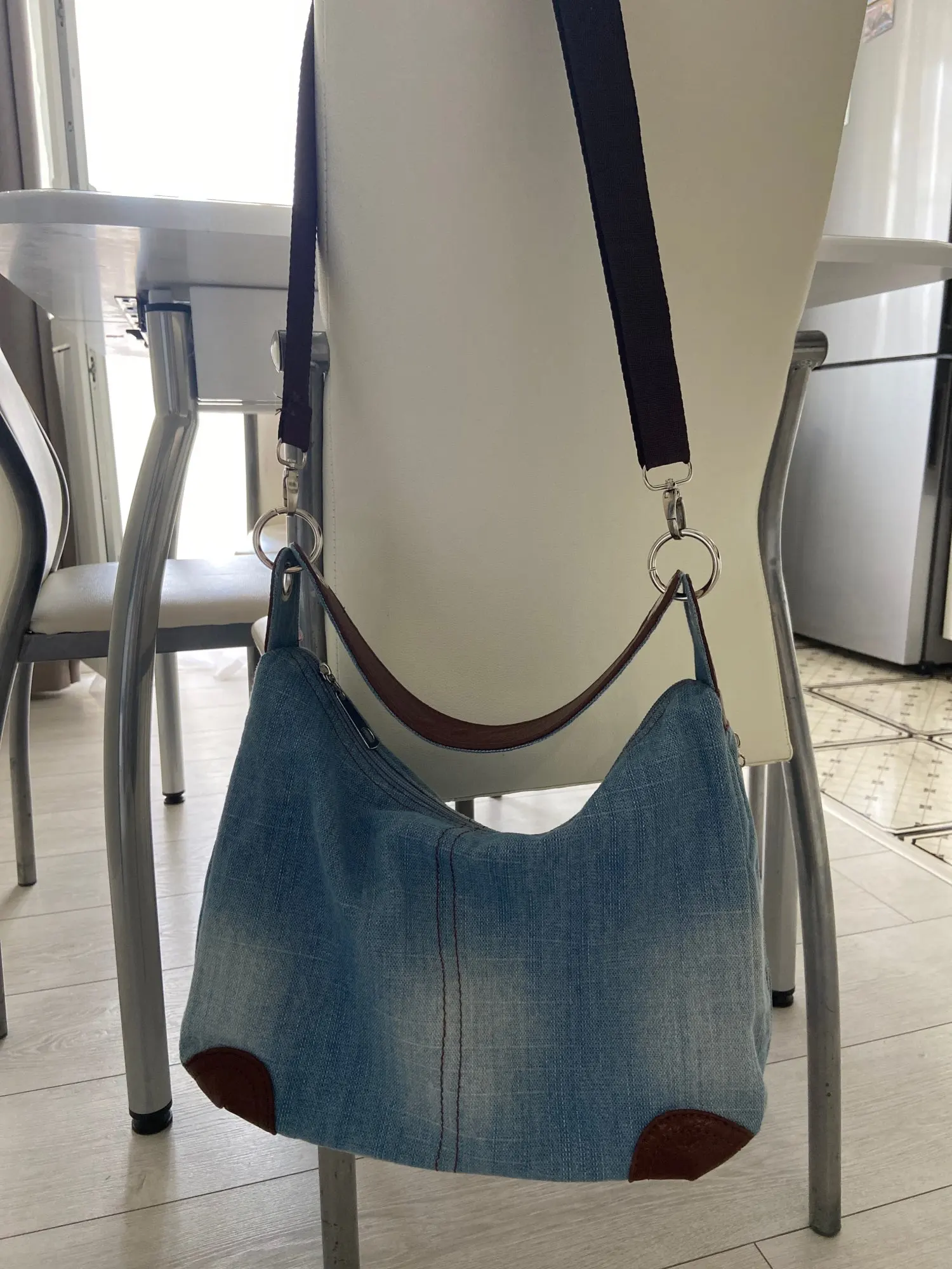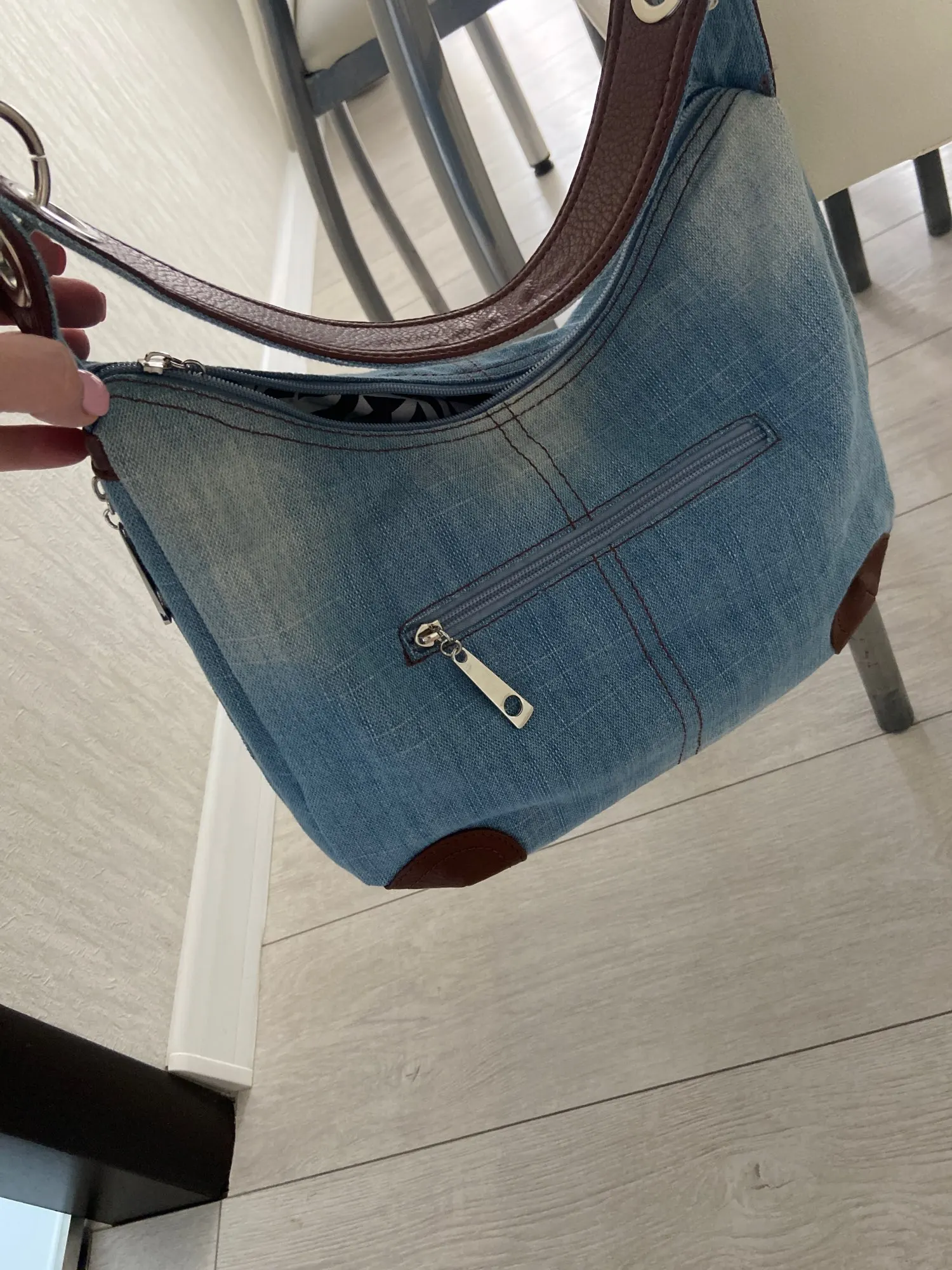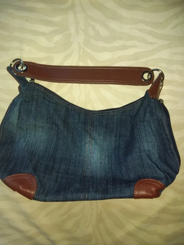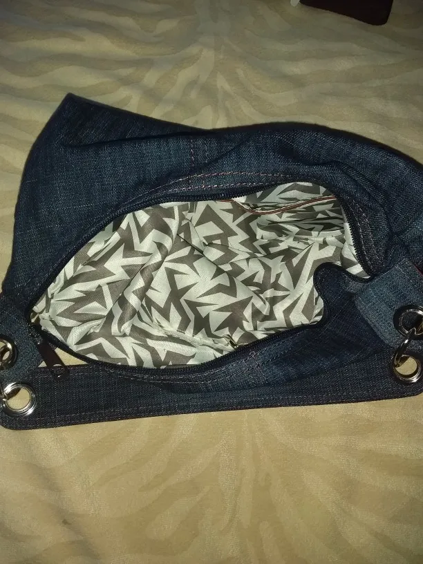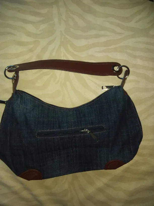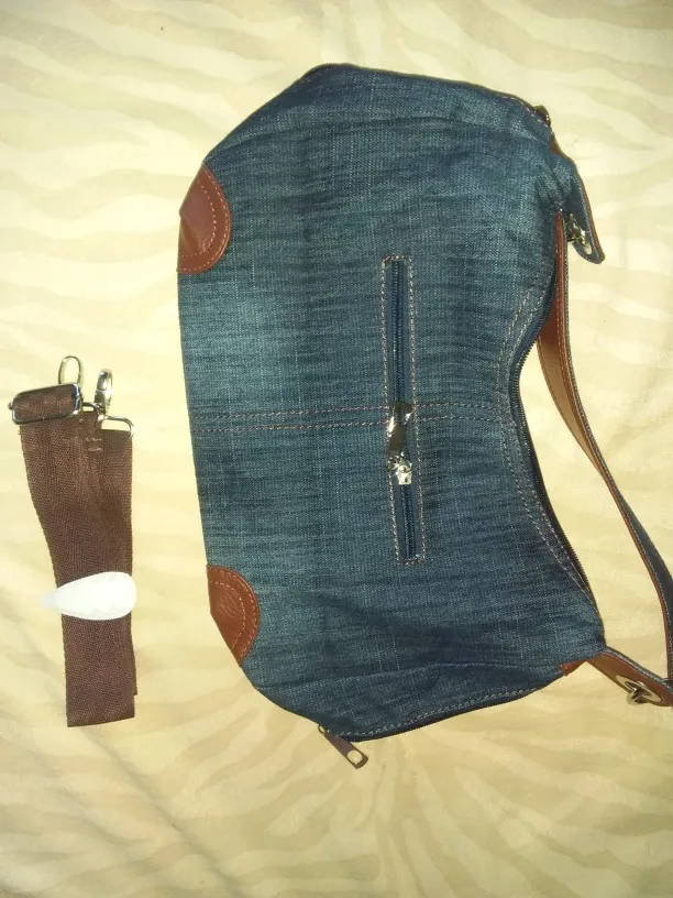 Well made denim bag with lots of zippered pockets. Very roomy and comfortable to carry. Great customer service and very fast shipping.