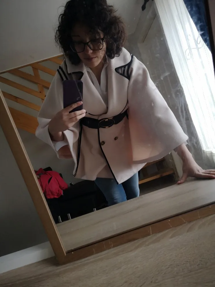 It is beautiful and have a good material. It fits perfectly. The colour is beige/very light pink, not exactly nude ok? It is beautiful nonetheless. It is warm but is not made for bad weather. It is soft to touch and cozy. It came quickly, only 21 days