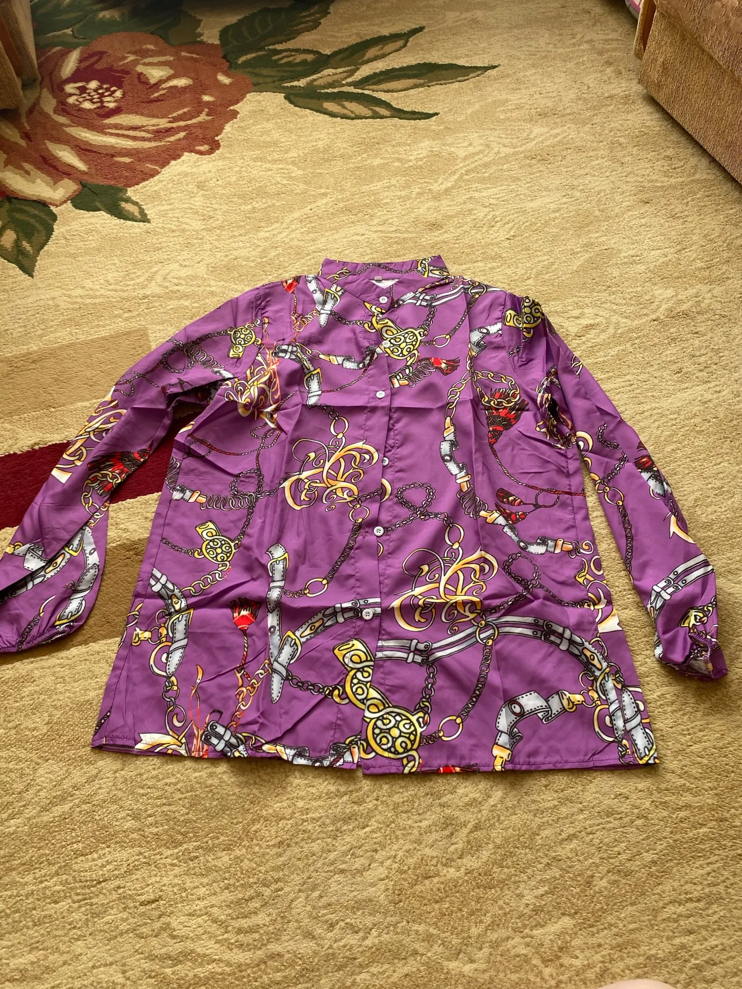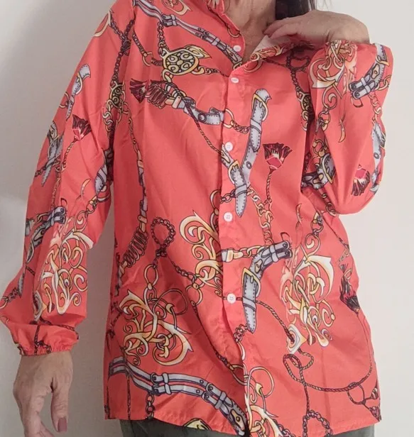 2022 New Design Plus Size Women Blouse V-neck Long Sleeve Chains Print Loose casual Shirts Womens Tops And Blouses