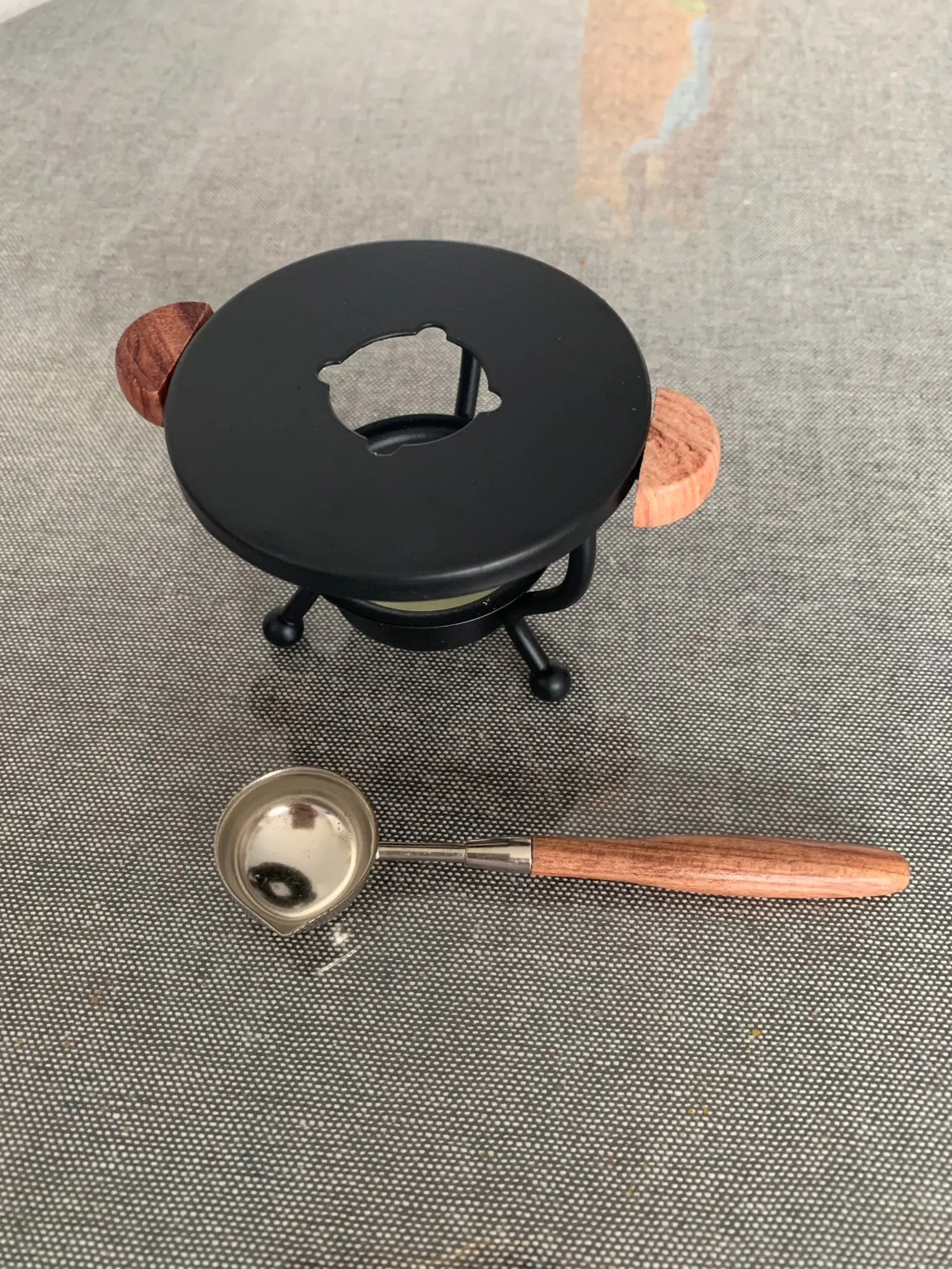 2022 New Durable Retro Fire Paint Wax Melting Tripod Furnace Included Wood Handle Sealing Candlestick Spoon Candle Making Kit