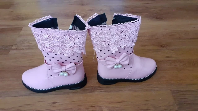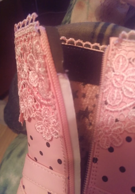 Exactly as pictured. Has that factory smell, I hope it goes away. The lining is not very warm, mostly foam (covered with the brown star layer) that you can clearly see in the third pic. Great product for the price.