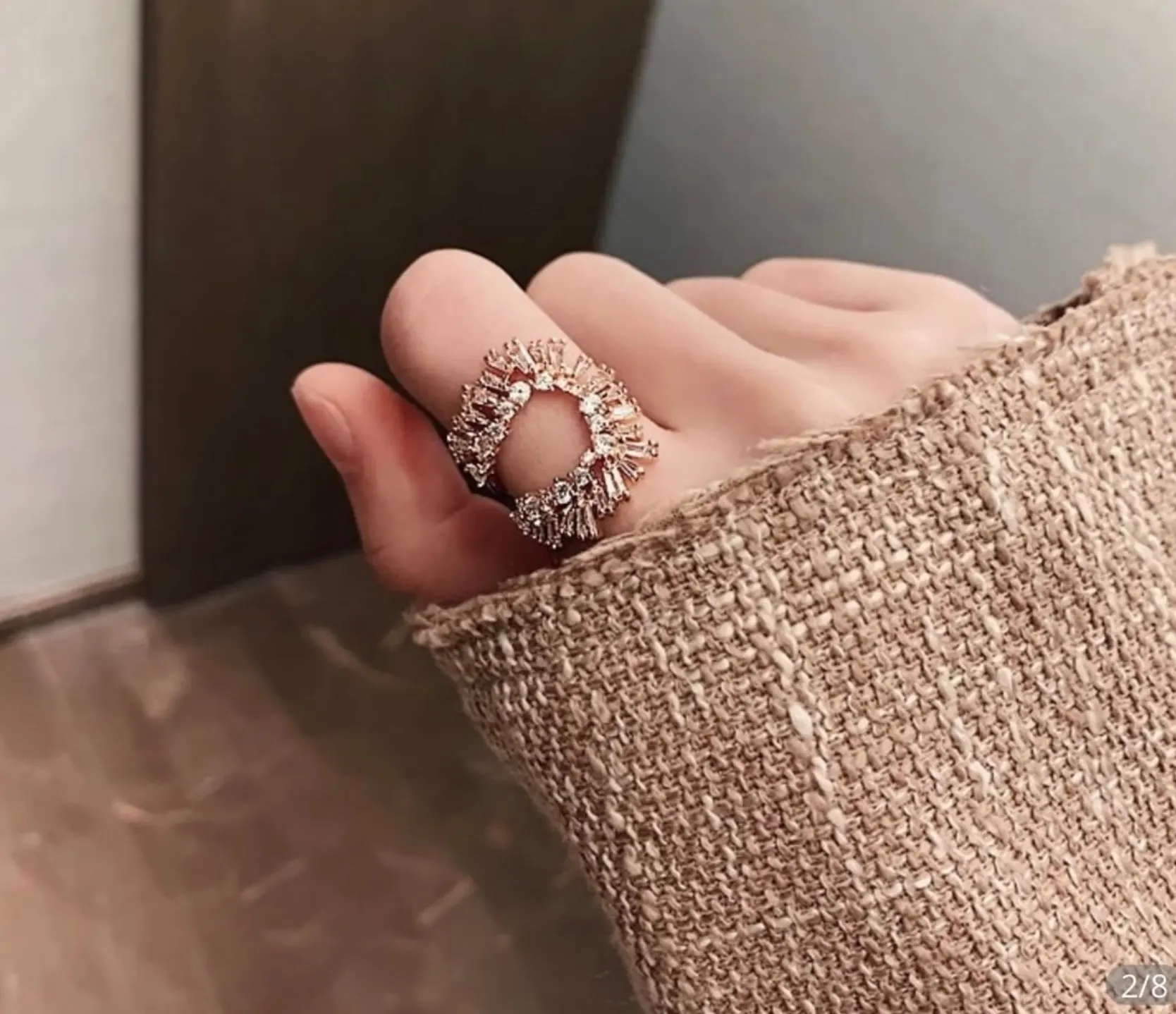2022 new luxury exaggerated crystal opening U-ring for women's wedding party temperament index finger for rings girl‘s ’jewelry