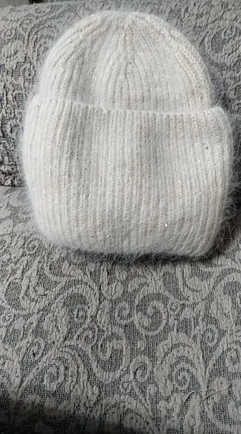 2022 New Rabbit Fur Warm Beanie Hat Women Winter Hats Sequins Bling Thick Knitted Skullies Beanies for Women Gorros Female Cap