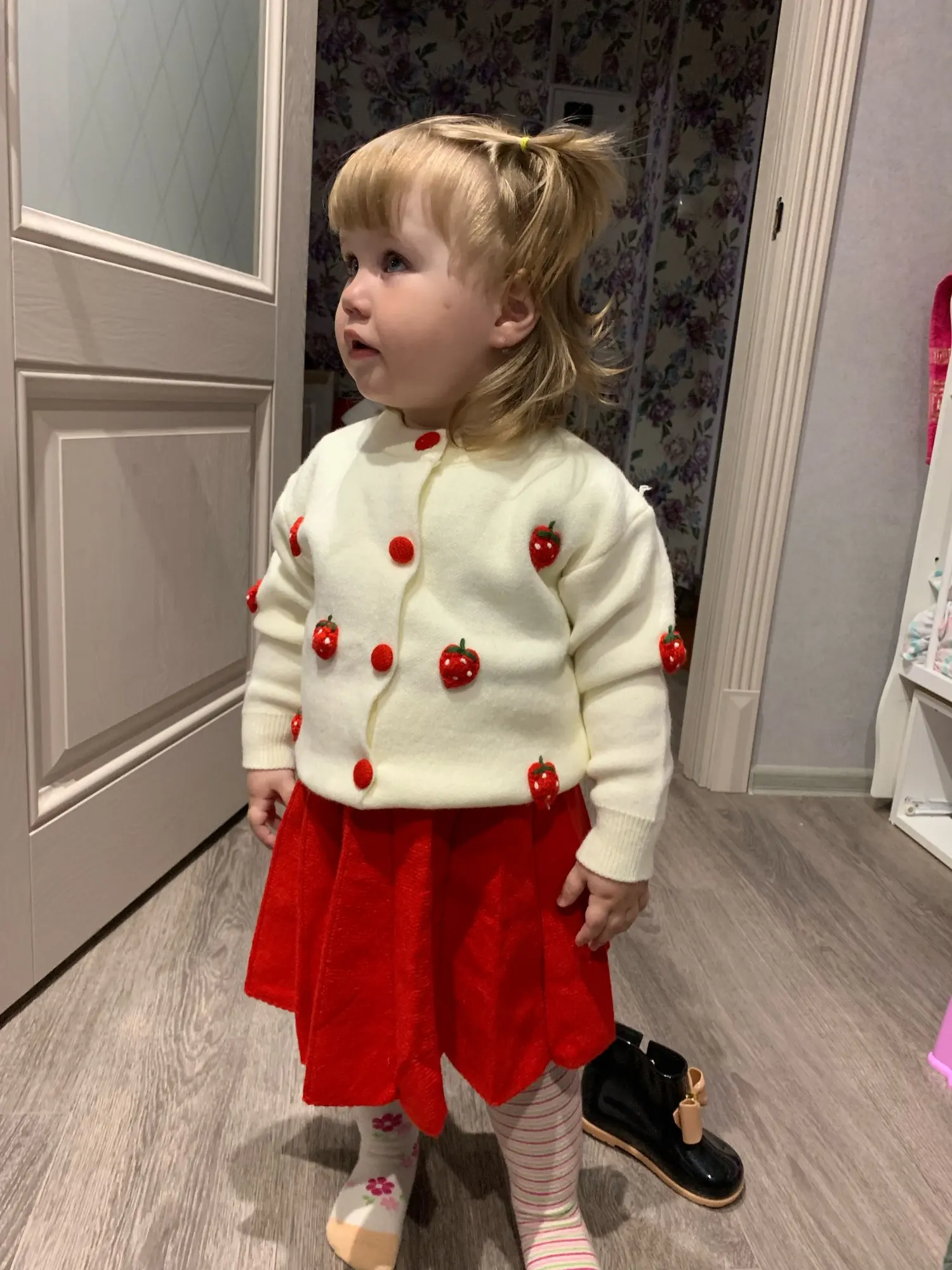 2022 New Style Girls Christmas Autumn Clothing Knitted Piece GIRL'S Cute Sweater Suit Skirt Warm Cardigan Pleated Skirt Girl Set