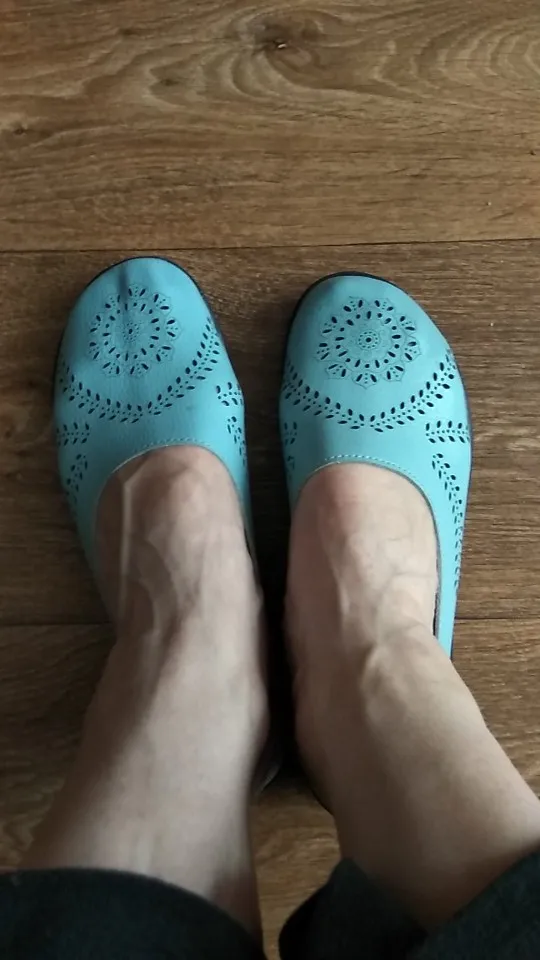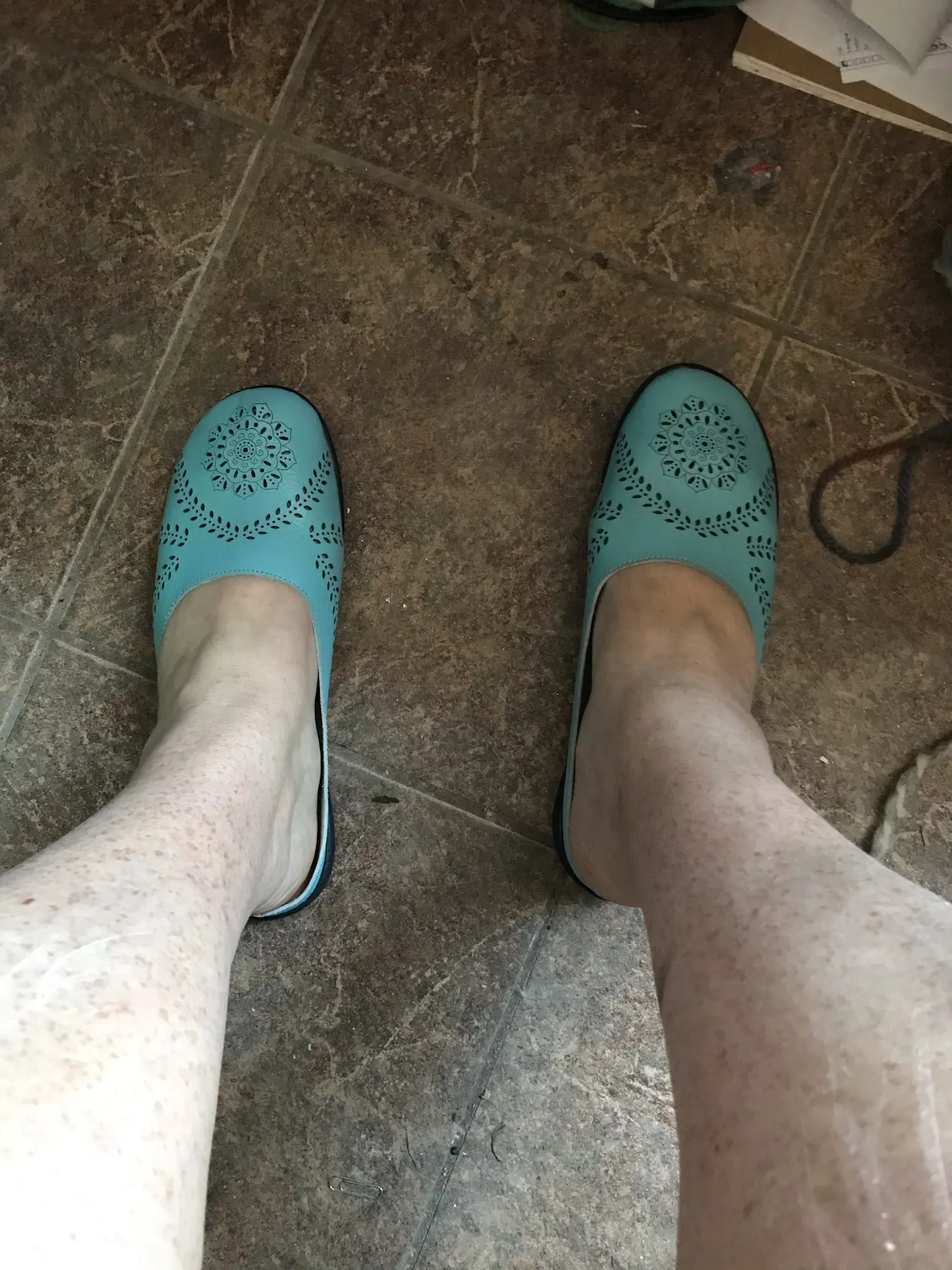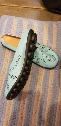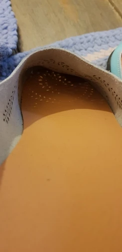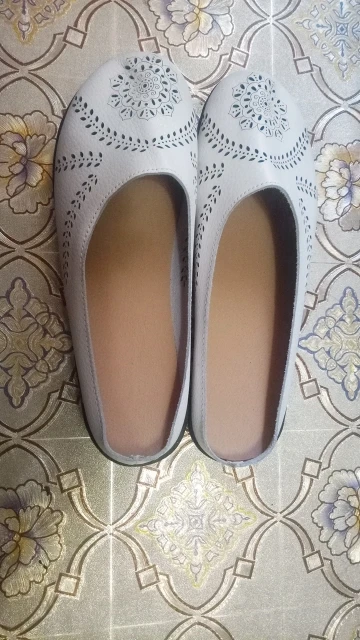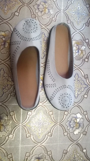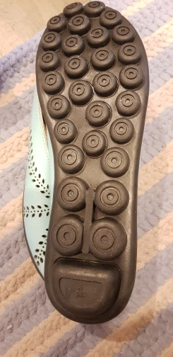 Shoe looks exactly like picture and it fits just right on the back edge of shoe, I would order half size up. I wear 7.5
