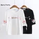 2022 Summer Women Cotton T-Shirt Fashion Cartoon Embroiery Base Tops Round Neck Short Sleeve Loose Female Japan Harakuju Tops