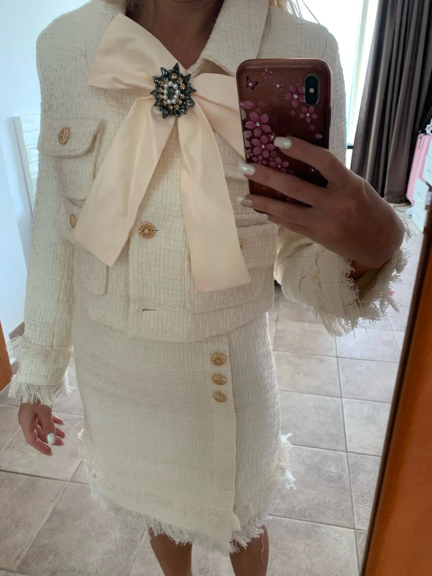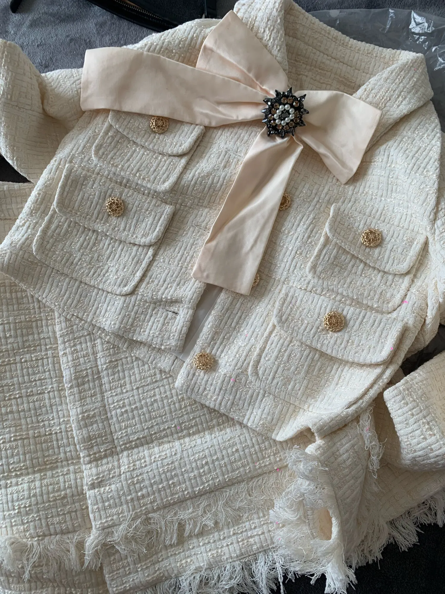 2022 Winter New Women Tweed Fringed 2 Two-Piece Set Sexy Long Sleeve V-Neck Button Coat + Short Skirt Set Vestidos Party Suit