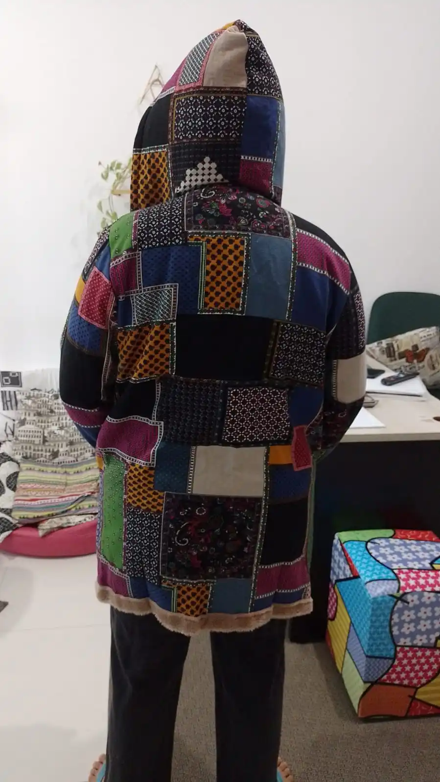 2022 Winter Vintage Women Coat Warm Printing Thick Fleece Hooded Long Jacket with Pocket Ladies Outwear Plus Size Coat for Women