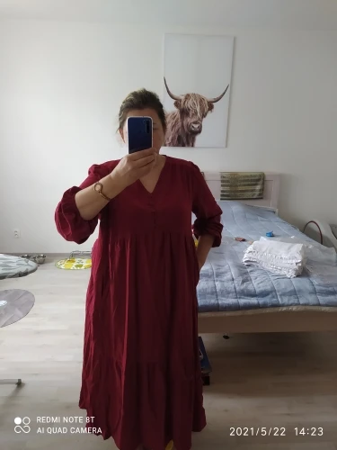 Beautiful dress, it's exactly as described, color (red wine) is just like on the pictures, I'm thinking about buying another color.