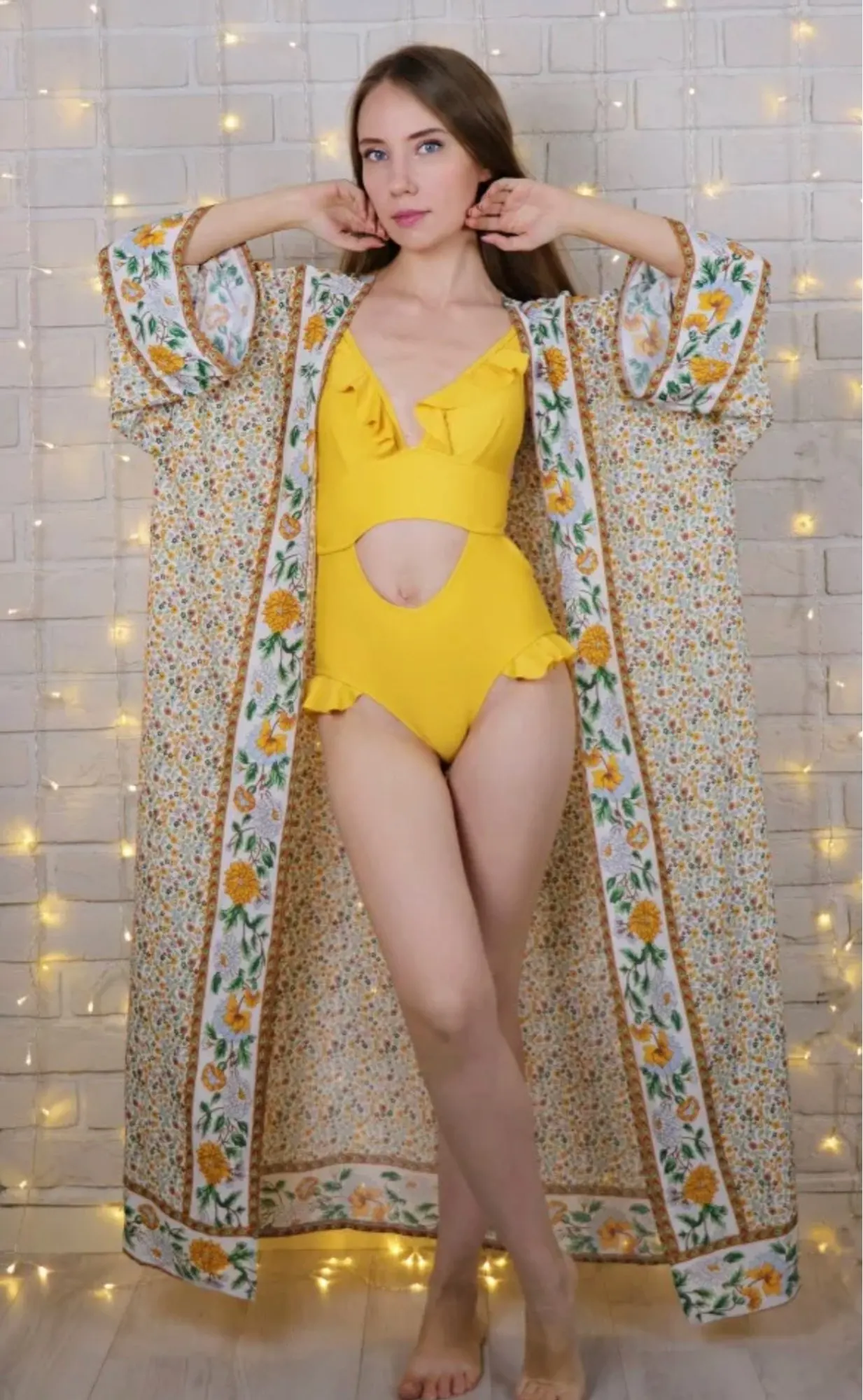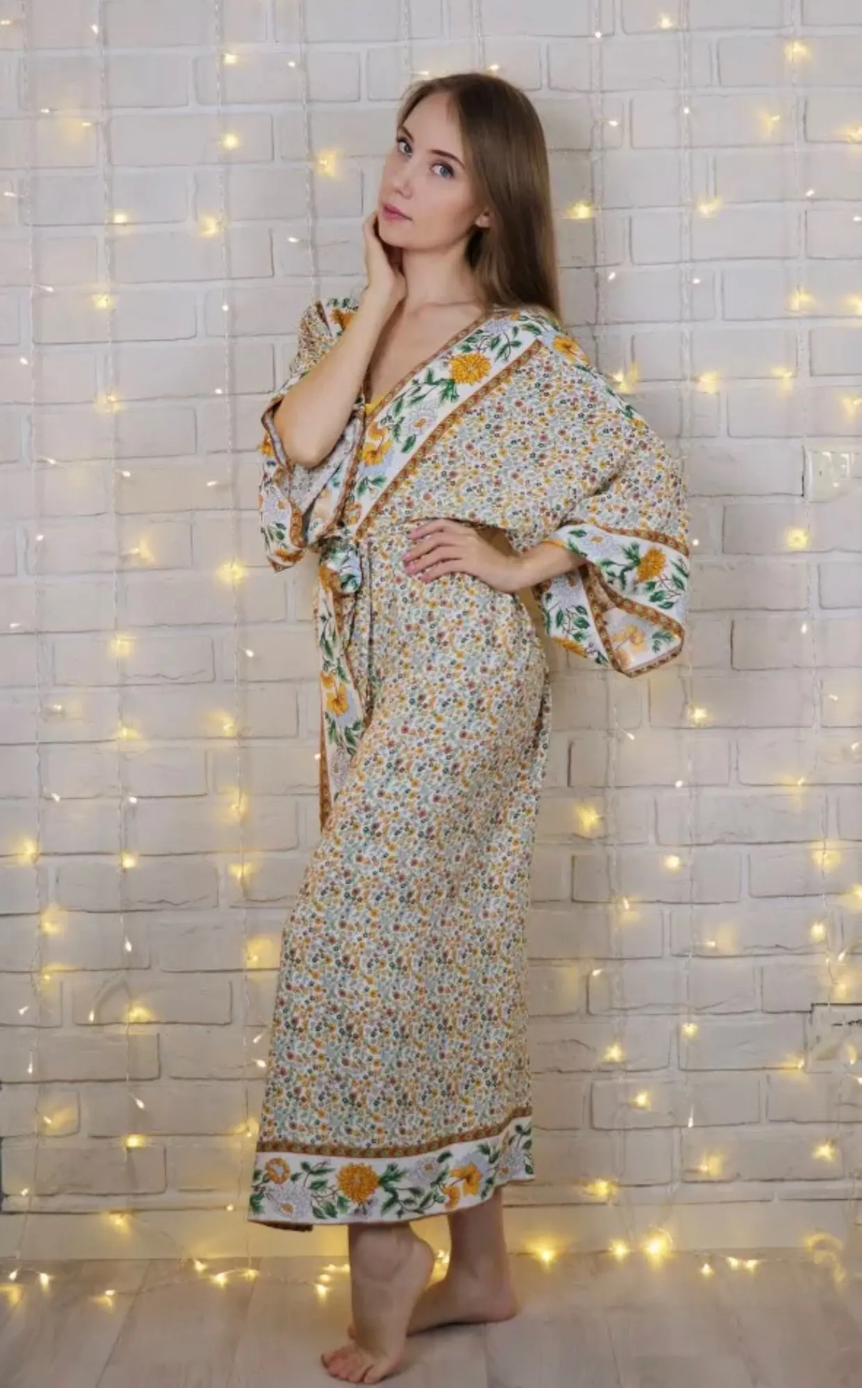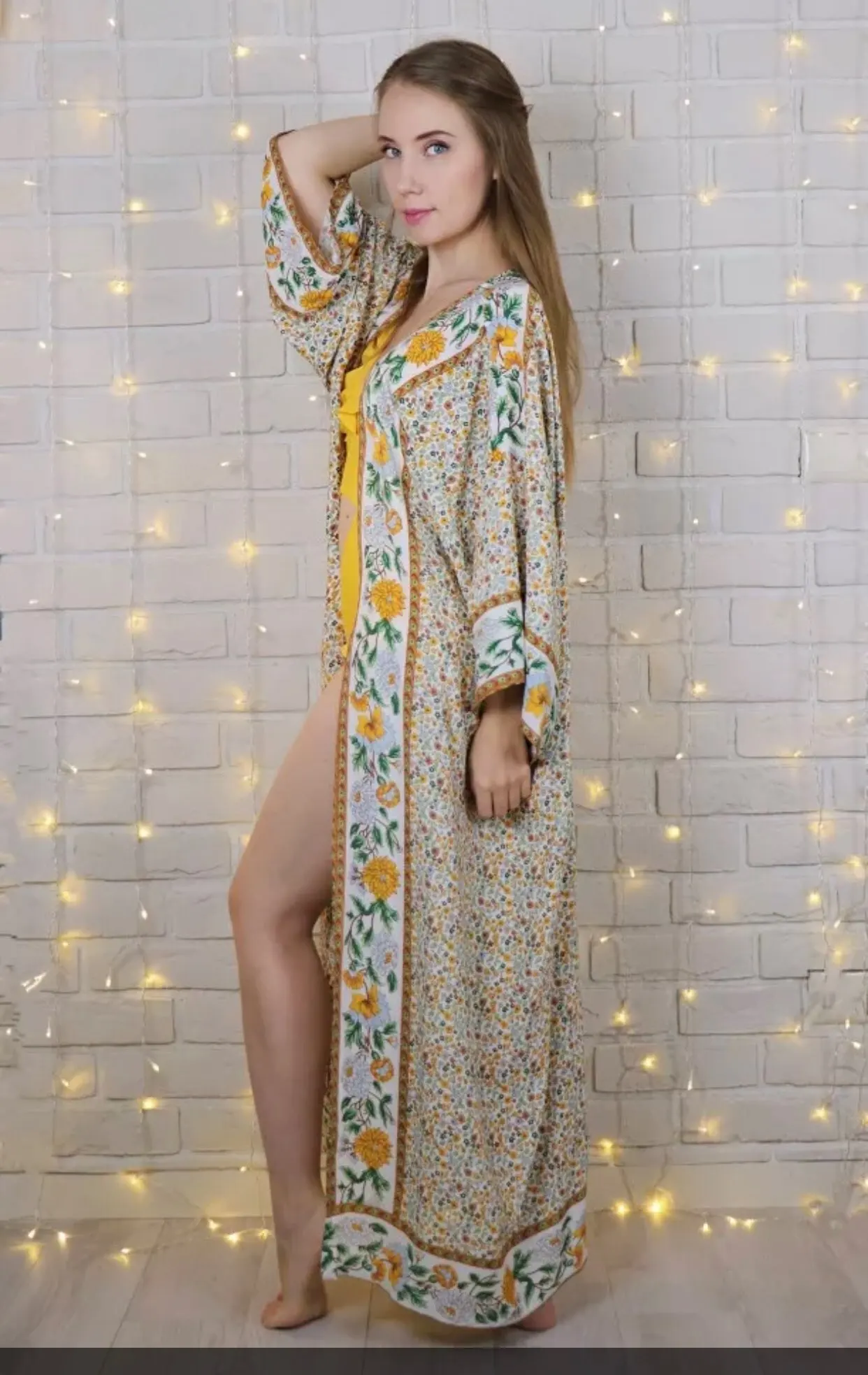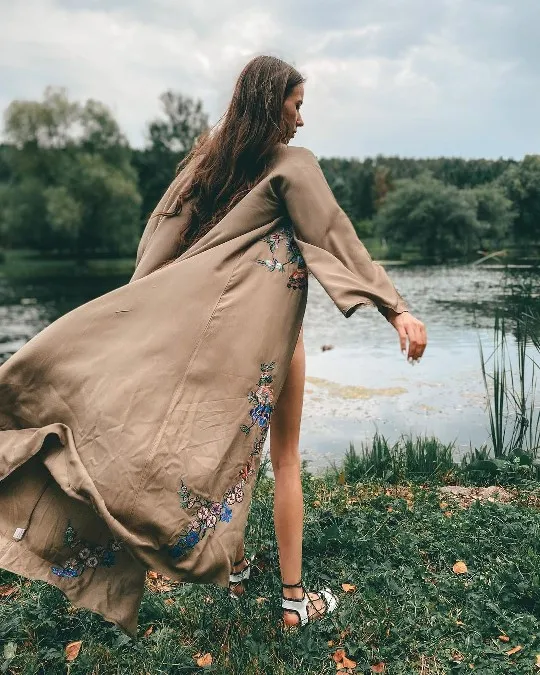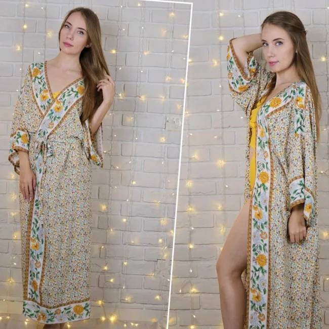 2022 Bohemian Printed Summer Beach Wear Bikini Wrap Dress Cotton Tunic Plus Size Women Swimsuit Cover-ups Kimono Cardigan N803