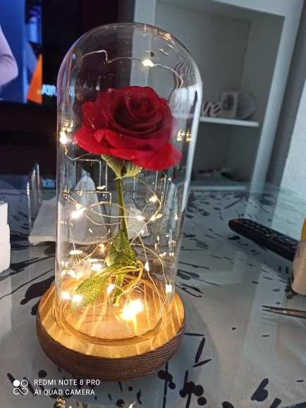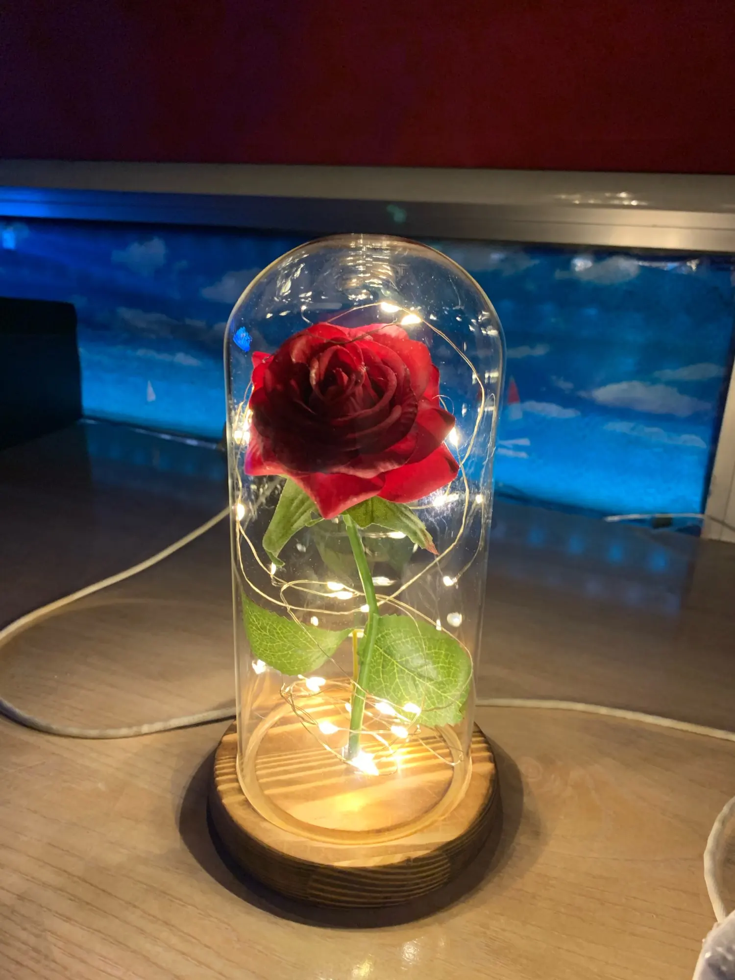 2022 Dropshipping Beauty and the Beast Red Rose in a Glass Dome with LED Light Wooden Base for Valentine's Mother's Day Gifts