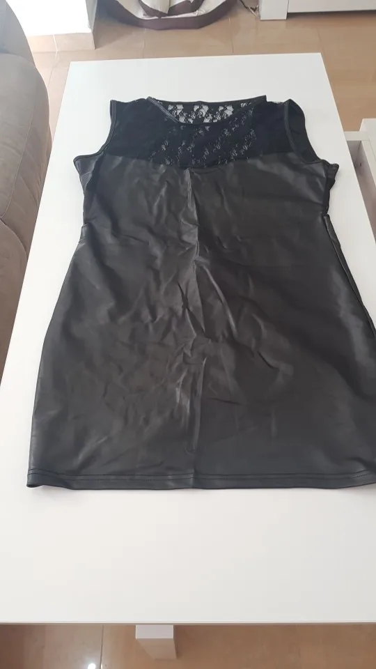 2022 Women Sexy Bodycon Dress O Neck Wet Look Fetish PU Leather Dress Backless Lace Slim Mini Dresses Club Wear Clothing