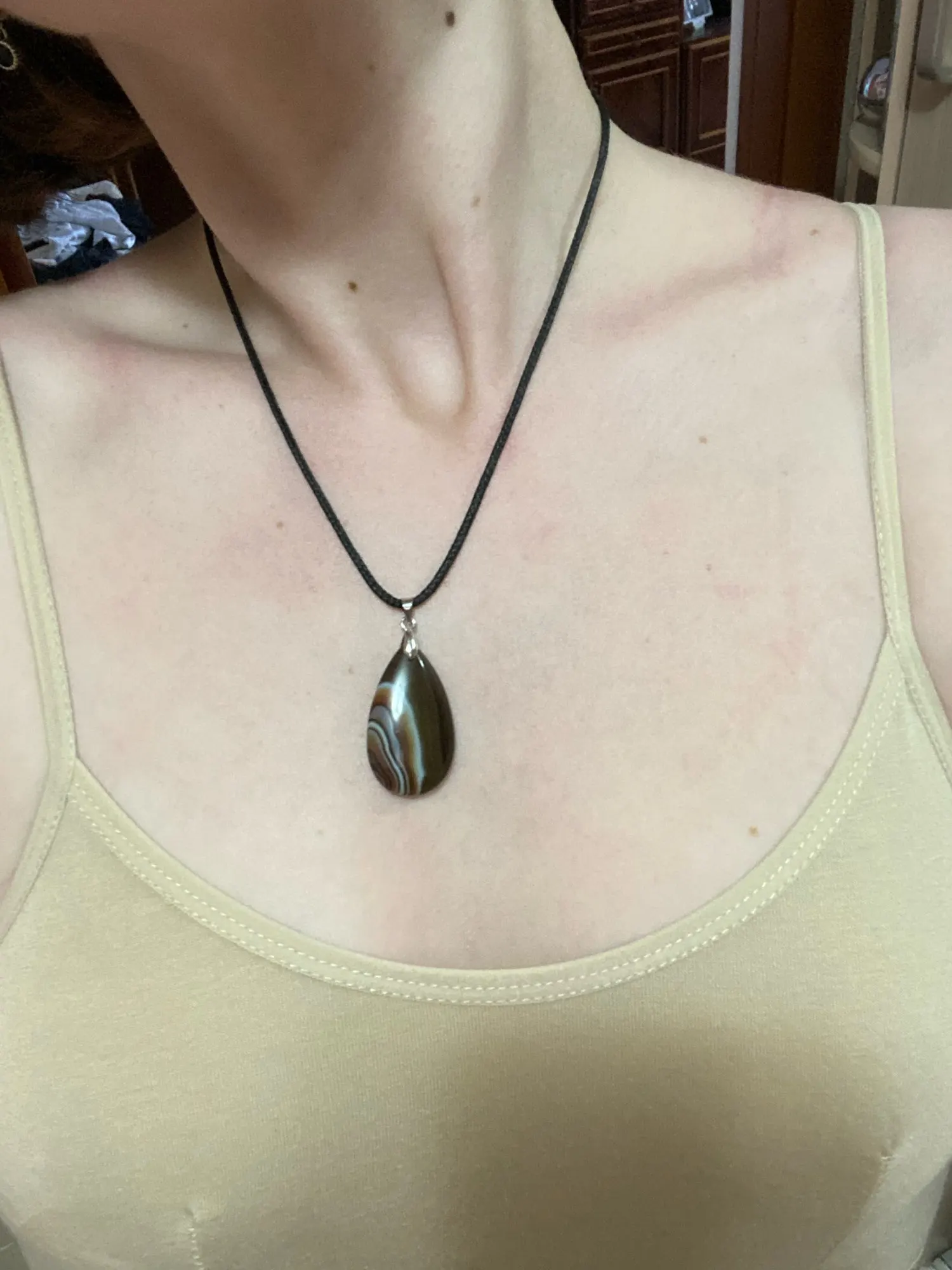 Bored grey stone, no blue, no shimmering. Looks nothing like the stone on the picture. I'm very disappointed.