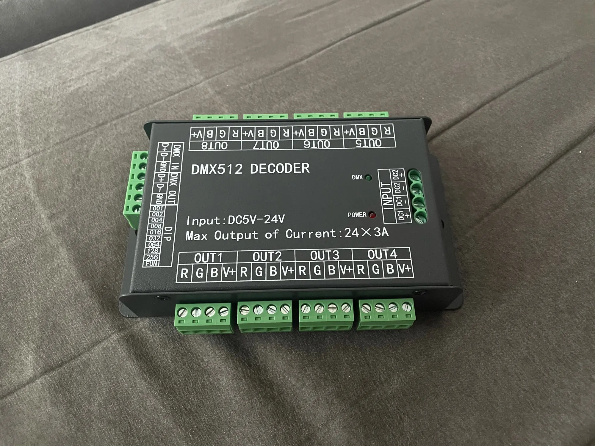 24CH 24channel Easy dmx512 DMX decoder,LED dimmer Controller, DC5V-24V,Max 3A,8 groups RGB controller, Iron case for led strip