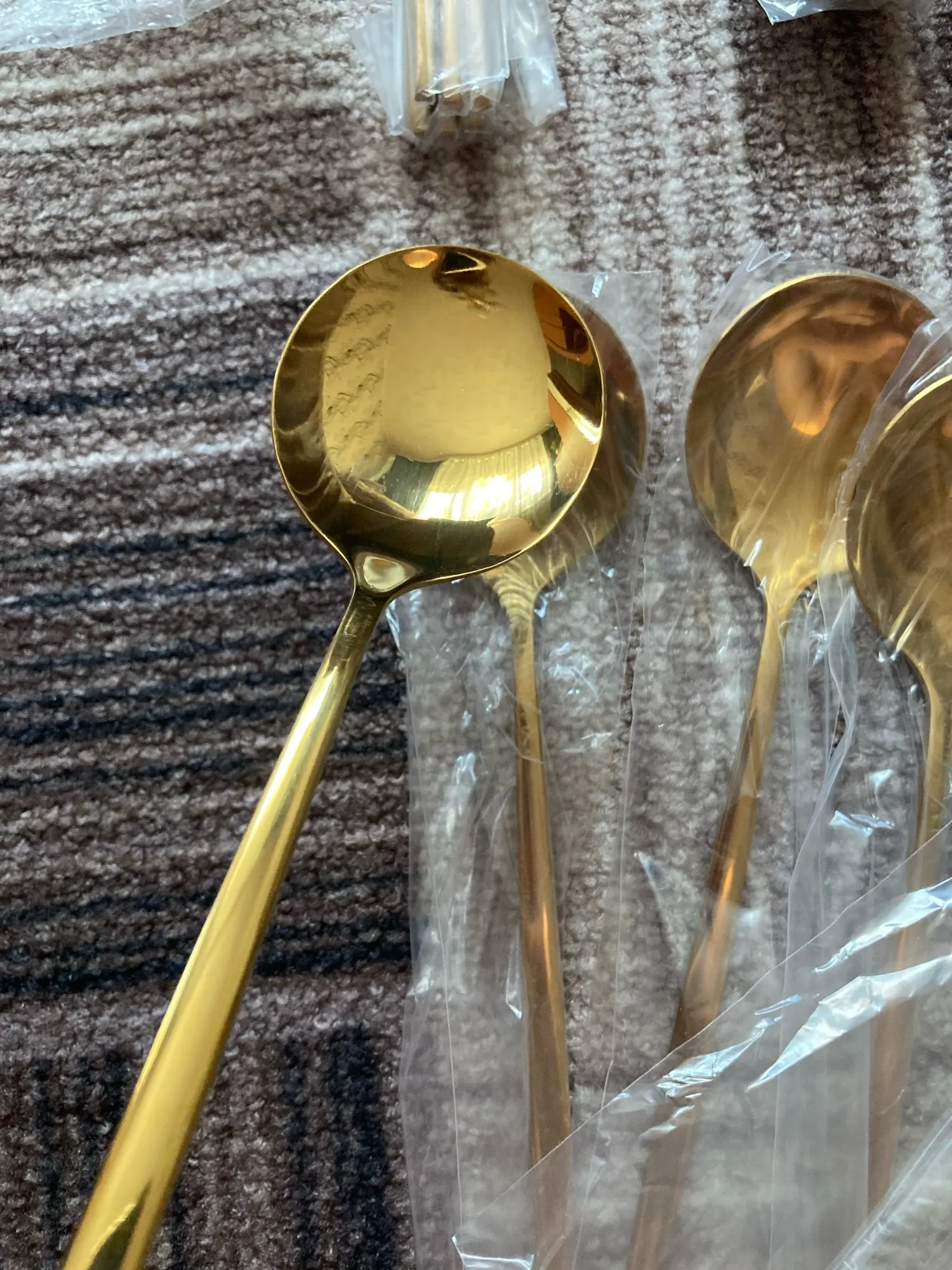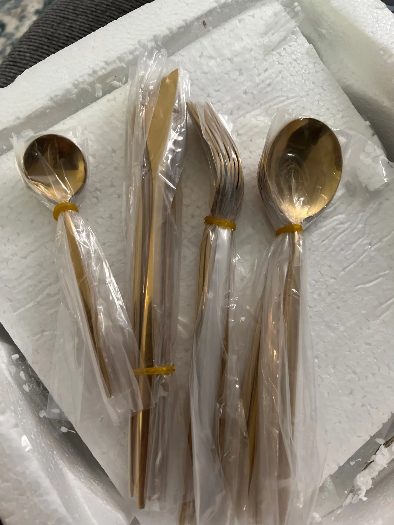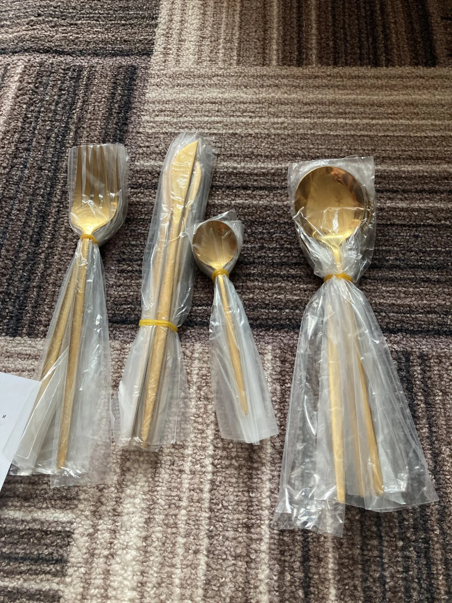 Good cutlery set. Came well packed. A little light in weight compared to normal stainless steel spoons. If you notice in the pictures, stainless steel is only written behind big spoons and fork not the knife and small spoon. However, they look exactly like in picture and eorth the price. The seller is very responsive. I used DHL service for shipping so they reached to me in 3 days. Overall I am very satisfied.