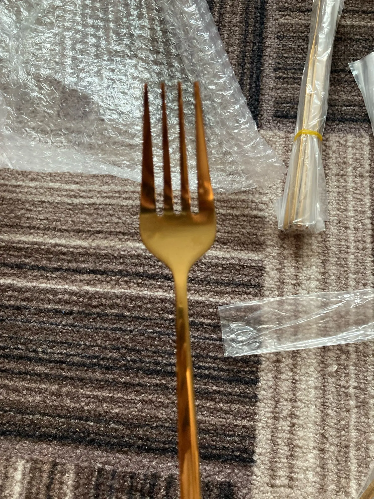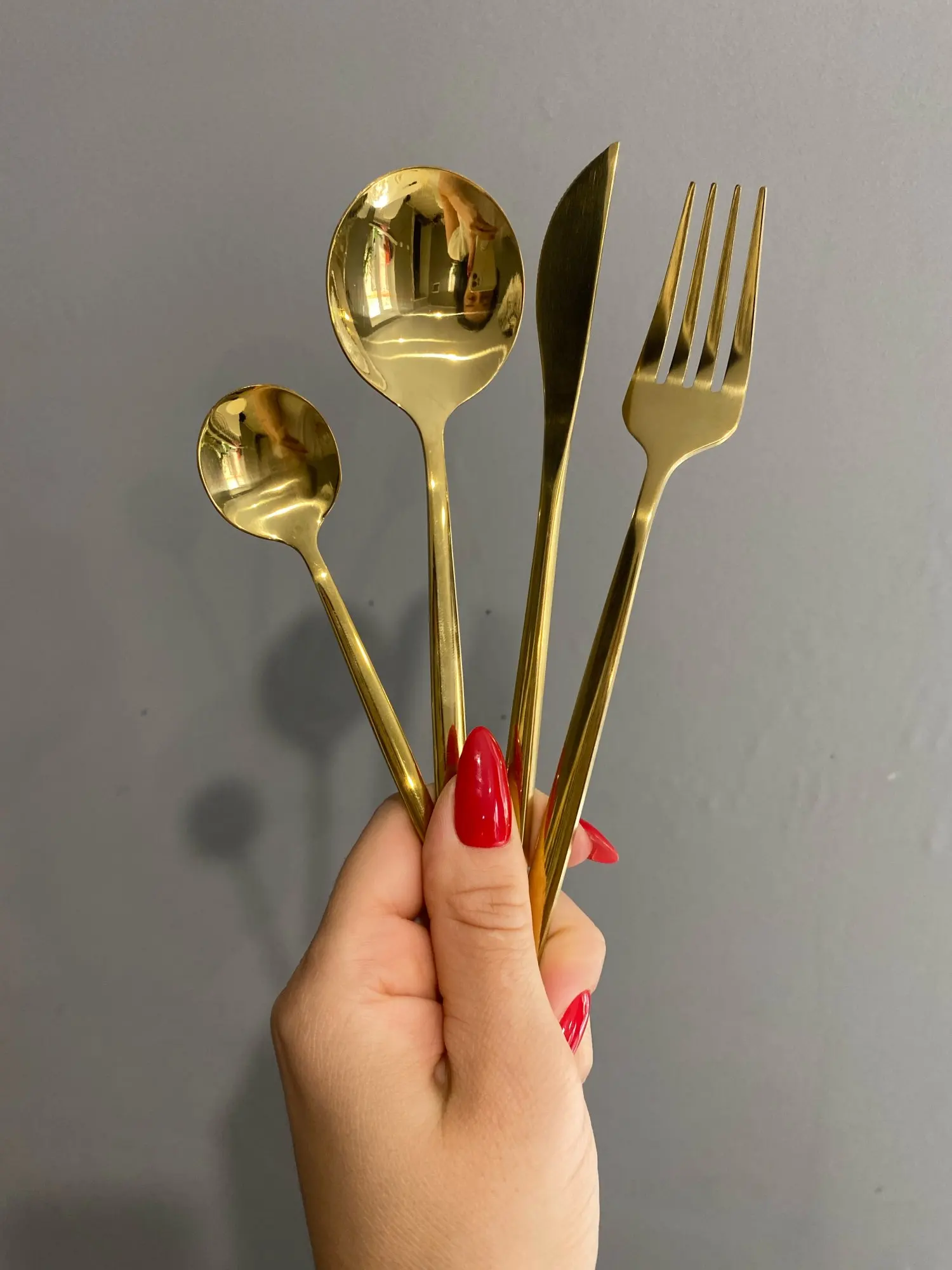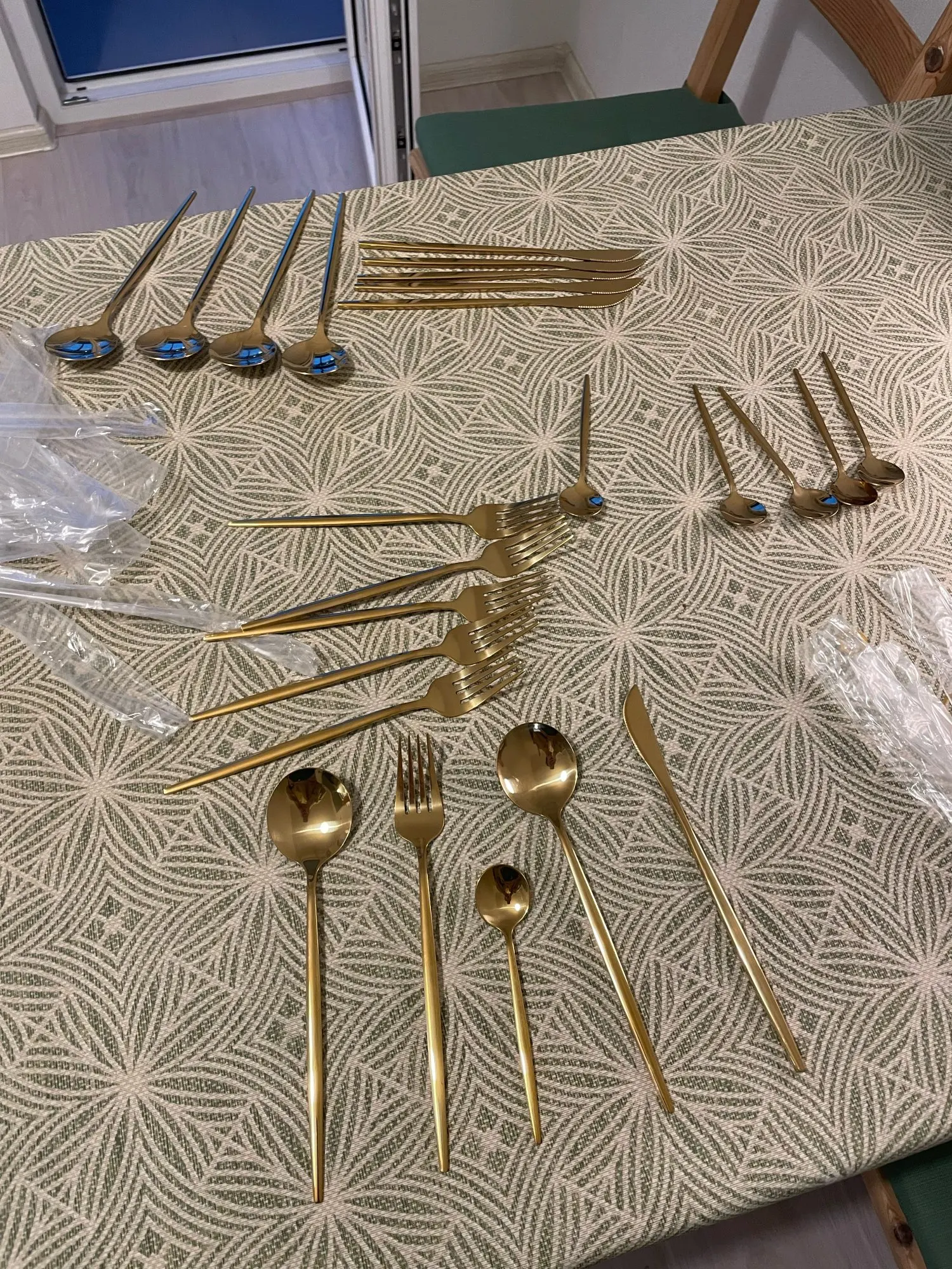 Good cutlery set. Came well packed. A little light in weight compared to normal stainless steel spoons. If you notice in the pictures, stainless steel is only written behind big spoons and fork not the knife and small spoon. However, they look exactly like in picture and eorth the price. The seller is very responsive. I used DHL service for shipping so they reached to me in 3 days. Overall I am very satisfied.