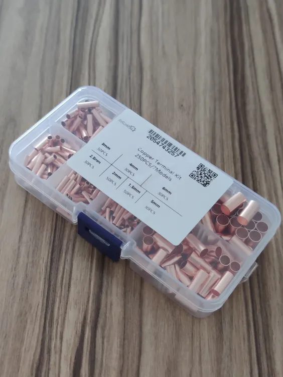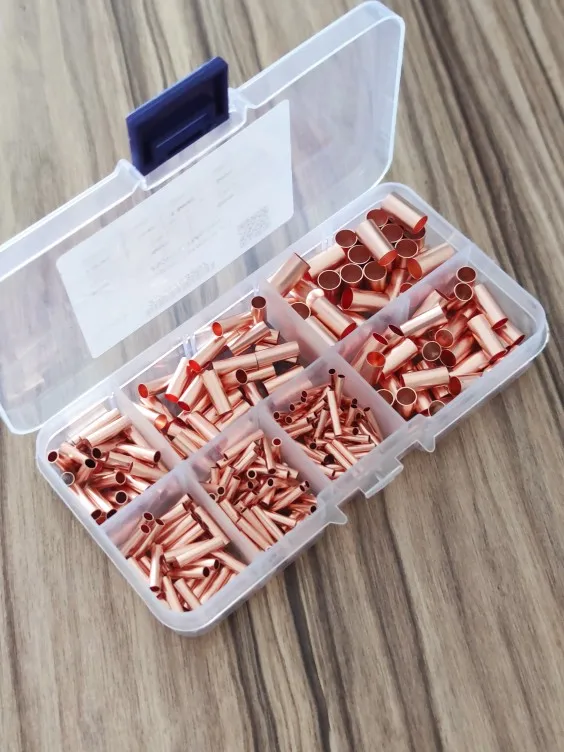 250PCS /7sizeCopper connecting pipe wire joint small copper tube intermediate joint direct connection pressure pipe cold pressed