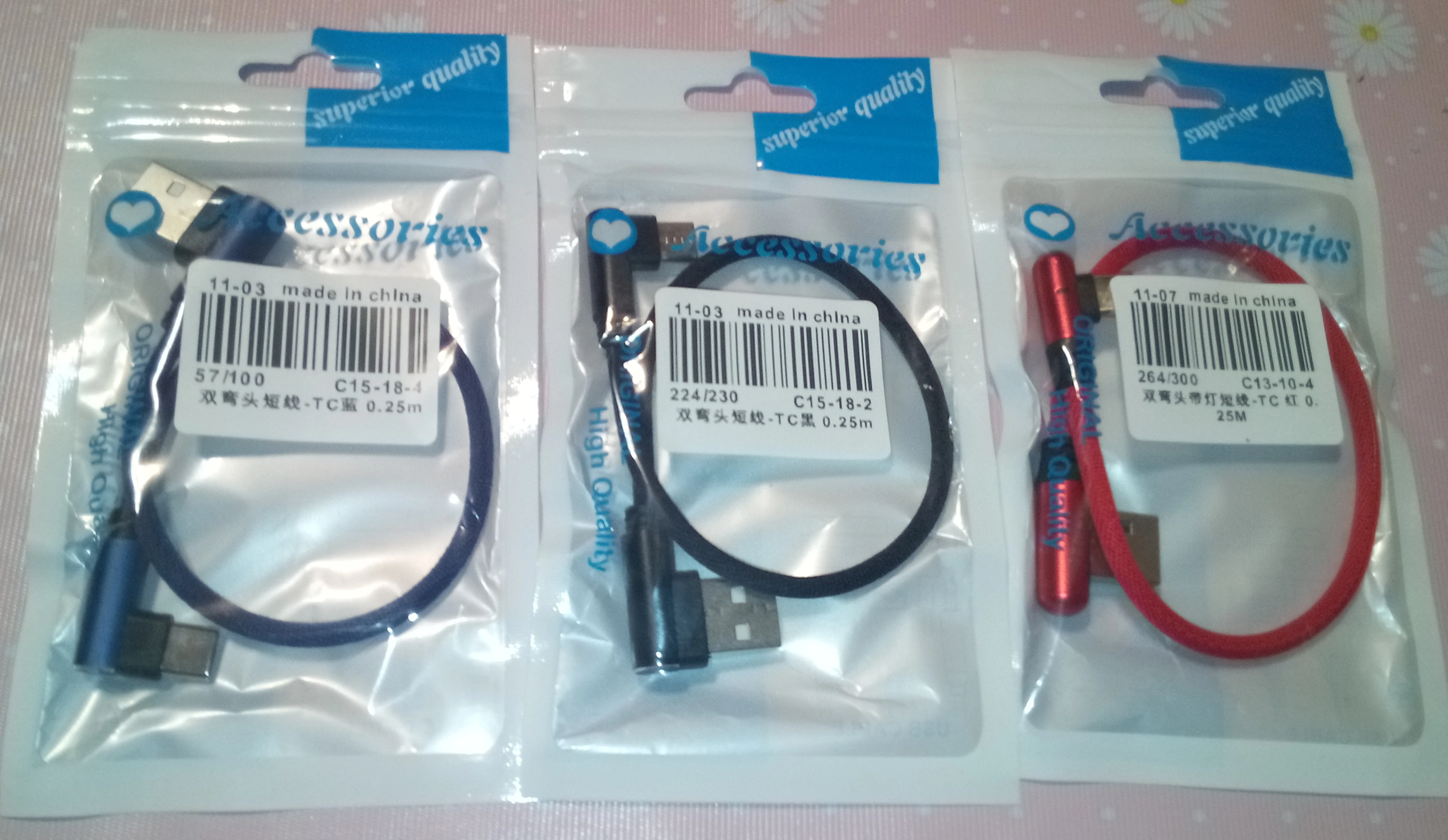 25cm Short Fast Charging Cable Double Elbow 90 Degree USB C Micro USB Data Cable For All Smart Phones For Type C For Mobilephone