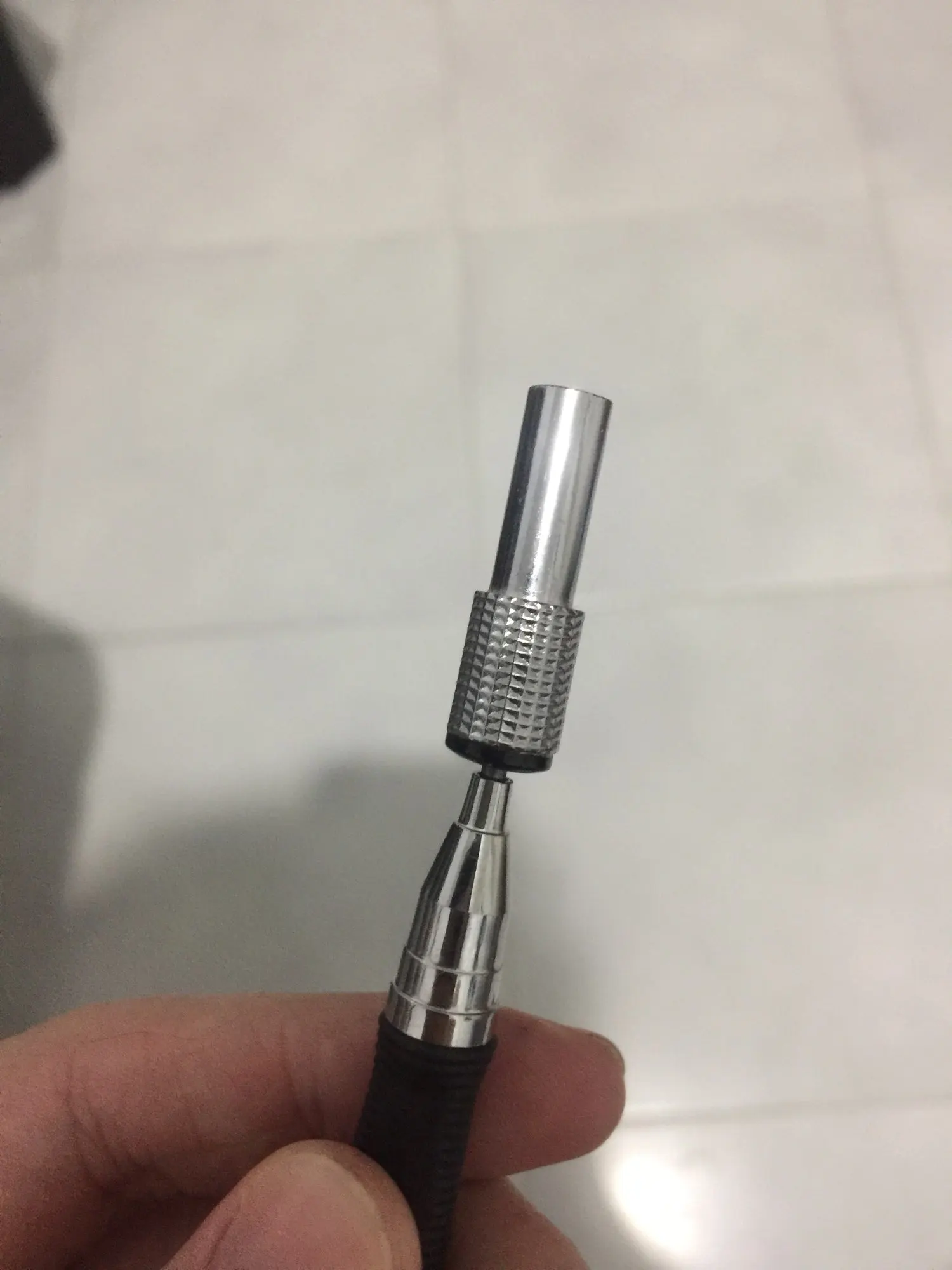 Tip is metal, rest is plastic. Was hoping for complete metal but for the price it is OK.