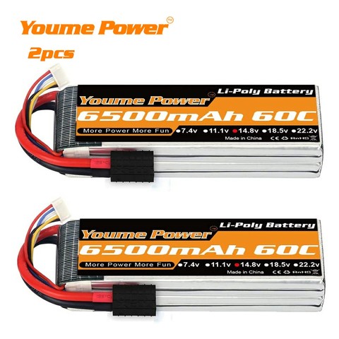 2packs YOUME 4s Lipo Battery 14.8v 6500mah 60C with TRX plug for Traxxa Slash X-Maxx Buggy Truggy Crawler Monster Car Drone Boat