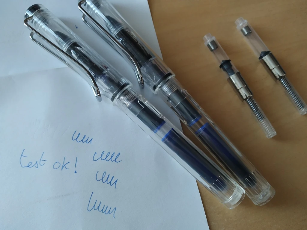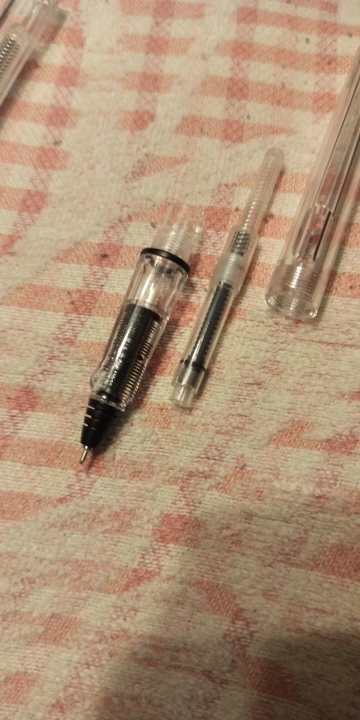 The pens are very good. Write smoothly and don't smudge. I got both 0.5 and 0.38 thickness but i don't see difference in writing (see 3rd picture of my review). Also i use ink cartridges, they work ok, haven't tried the included ink pump.