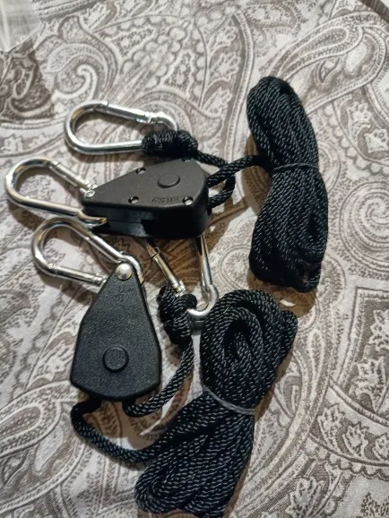 2pcs 1/8" Pulley Rope Ratchet 150lb Heavy Locking Hanger Lifting Lanyard for Tent Room Fan Grow Plant Camping Hiking