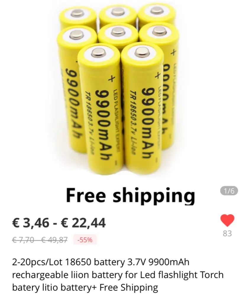 2pcs/Lot 18650 AA battery 3.7V 9900mAh rechargeable liion battery for Led flashlight Torch batery litio battery+ Free Shipping