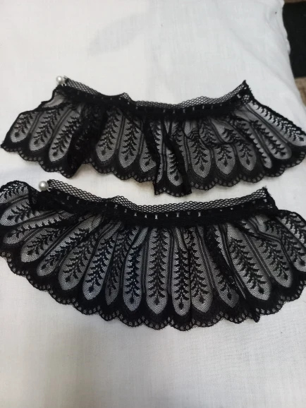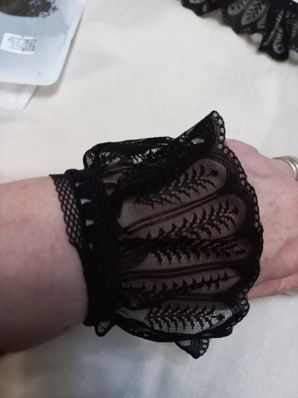 2Pcs/Pair Women Girls Fake Flare Sleeves Floral Lace Pleated Ruched False Cuffs Sweater Wrist Warmers With Faux Pearl Button