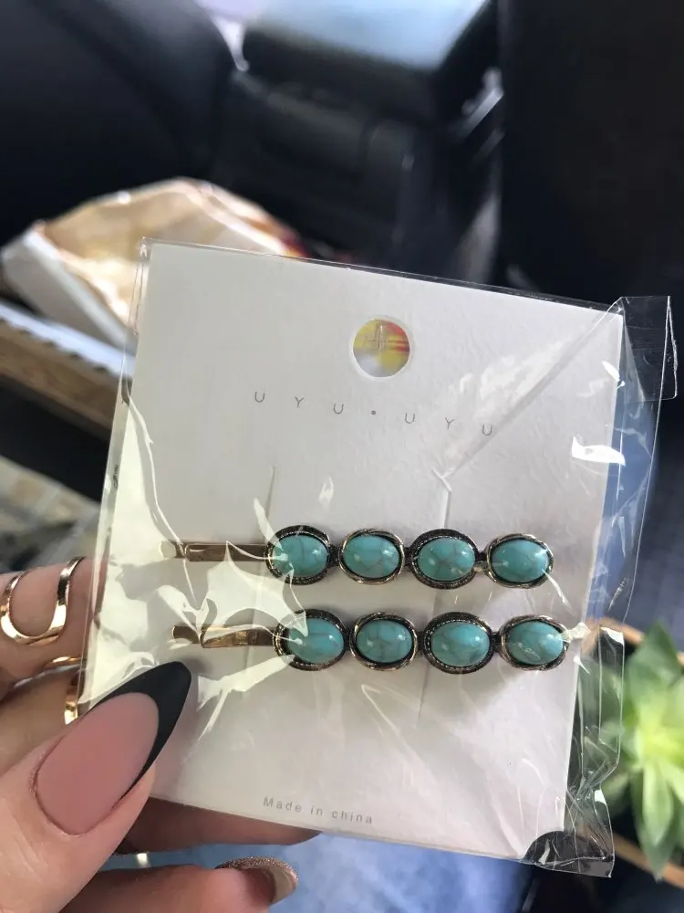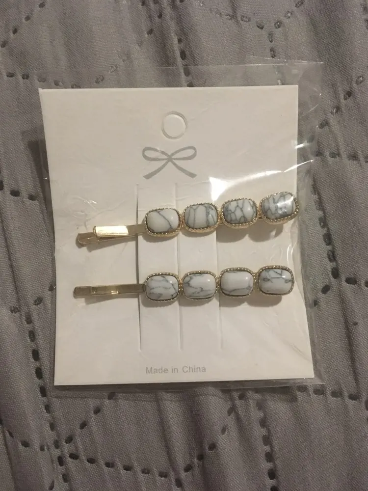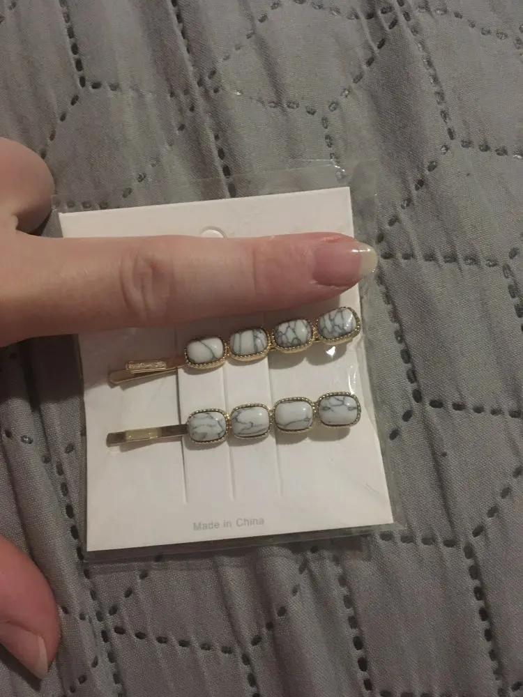 2pcs/Set Korean Fashion Women Girls Gold Metal Geometric Hair Clips Natural Stone Hairpins Vintage Barrettes Hair Accessories
