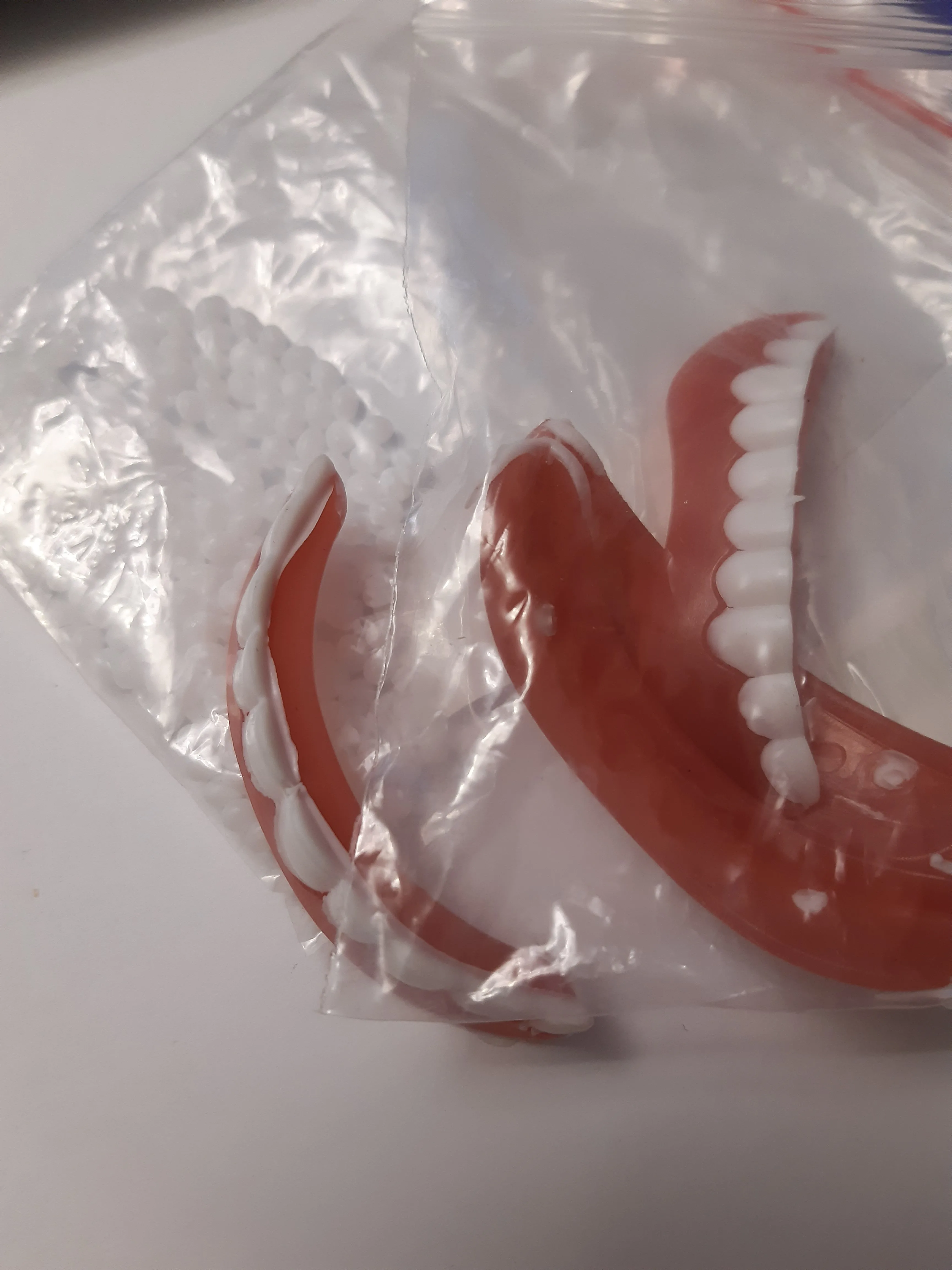 The Fake teeth has no grip at all, both the upper and lower fake teeth... Too bad... It is therefore useless.