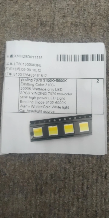 2PCS YINDING 7070 two-color 50W high power LED Light Emitting Diode 3100-6900K Warm White+Cold White light Car headlight source