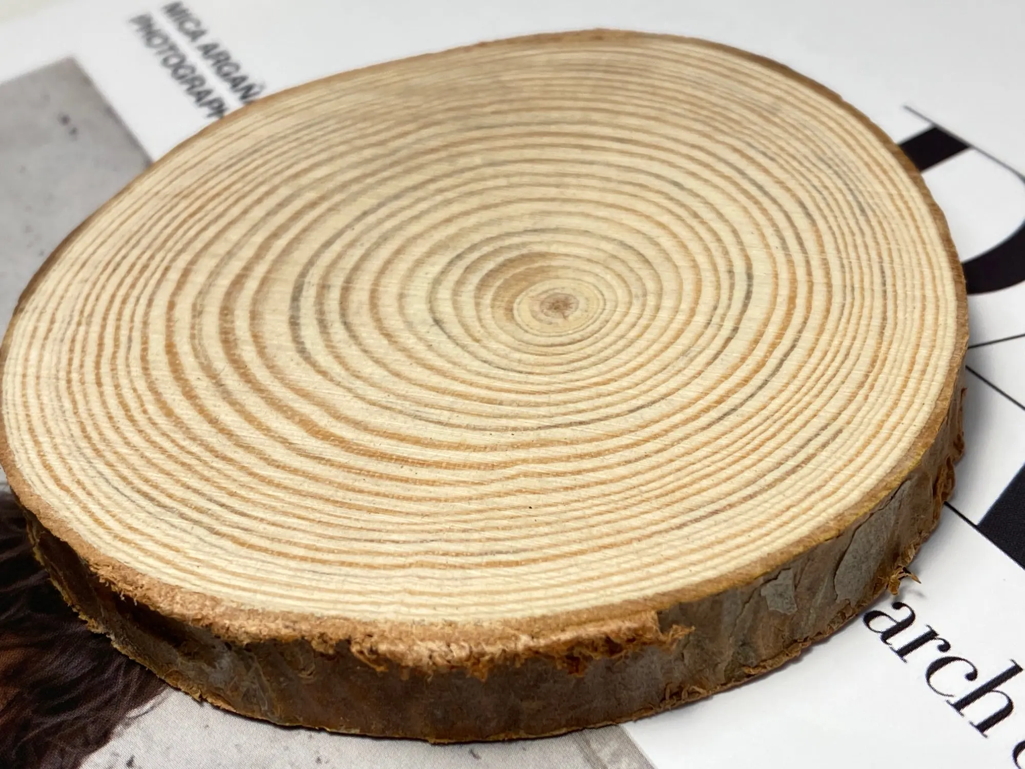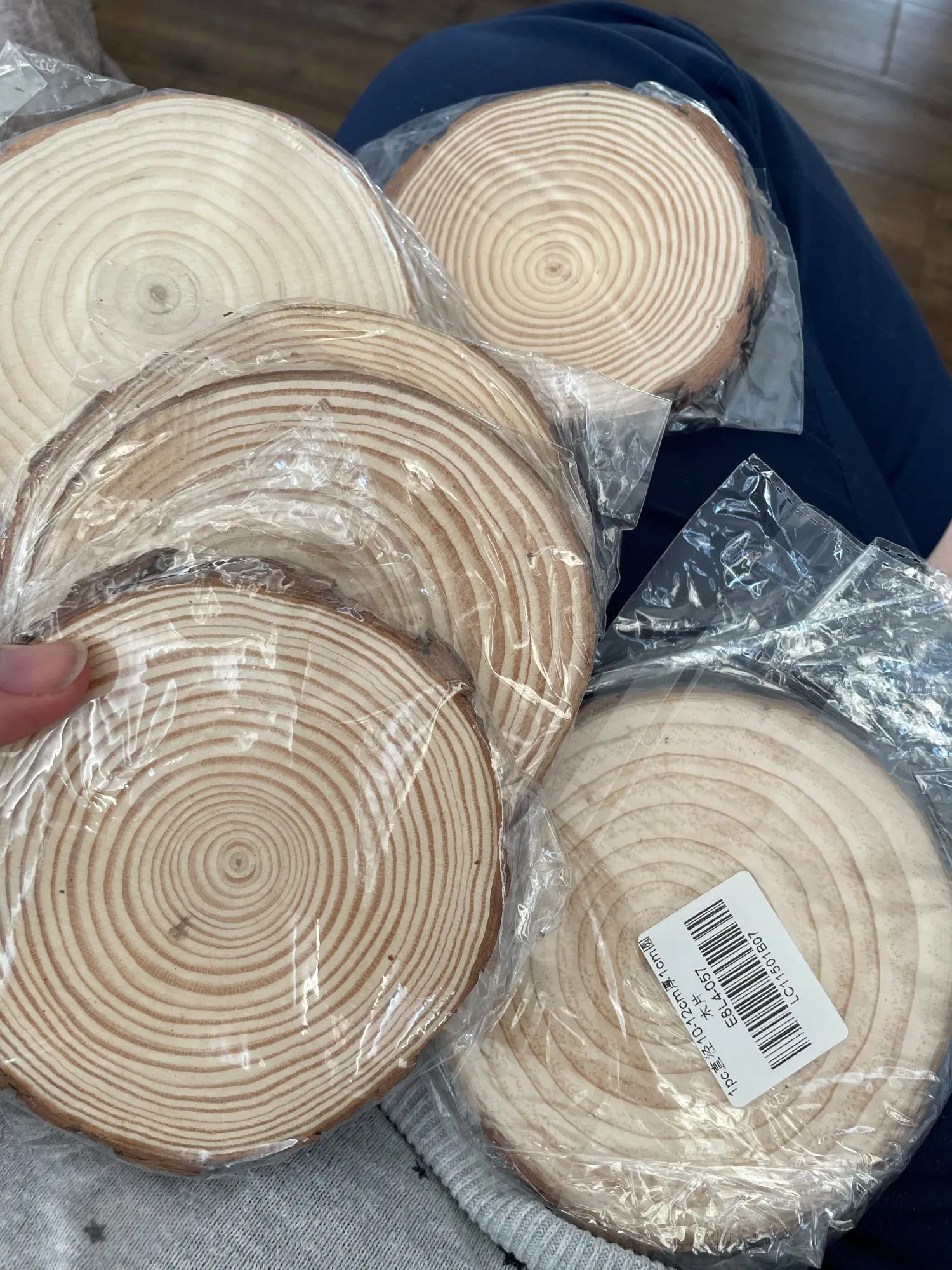 Very thin slices of wood .. not heavy .. one wooden slice was chipped off and almost breaking .. well packed